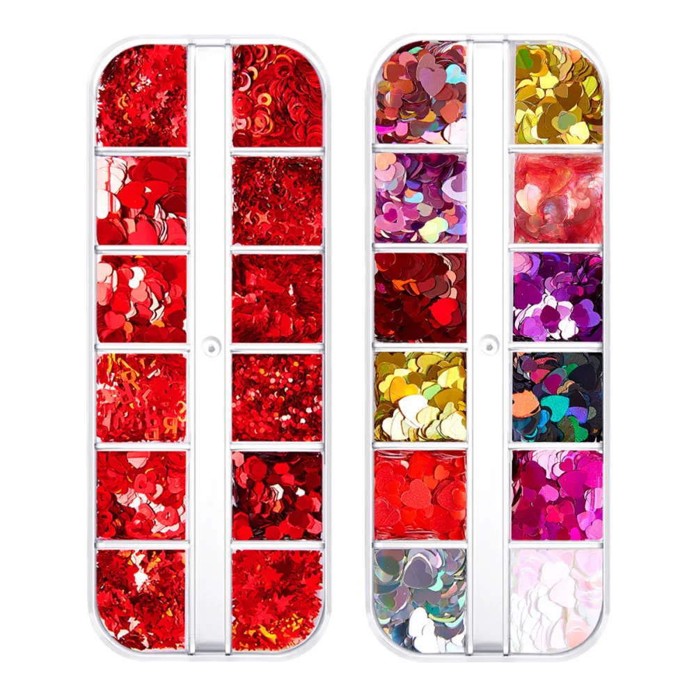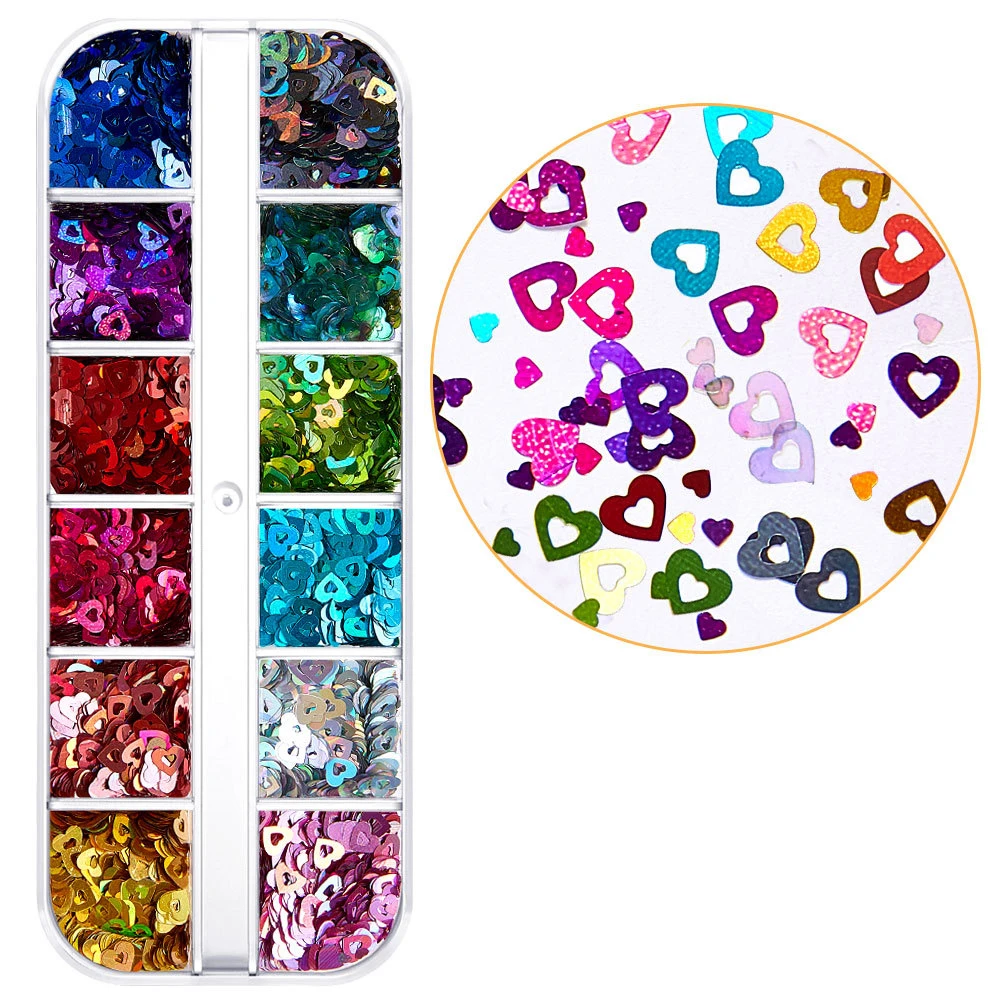 12 Сетки блестящие хлопья блестки DIY эпоксидная смола, форма для дизайна ногтей, для изготовления ювелирных изделий, наполнитель, блестящий набор, День Святого Валентина, украшение для любви