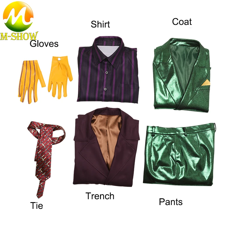 Супер Злодей джокер костюм для косплея фиолетового цвета Тренч зеленый костюм Mr J наряды Хэллоуин униформа для взрослых мужчин любой размер