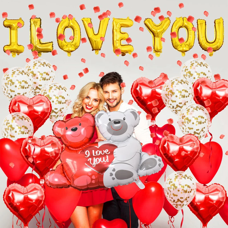 Я ЛЮБЛЮ ТЕБЯ воздушные шары | День Святого Валентина праздничные украшения из шаров | Шелковые лепестки роз | Воздушные шары в форме сердца | Воздушный шар с медвежонком
