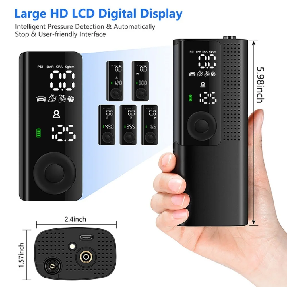 ✔The digital lcd display of the air pump, four types of units can be exchanged (psi, bar, kpa, kg/cm2)