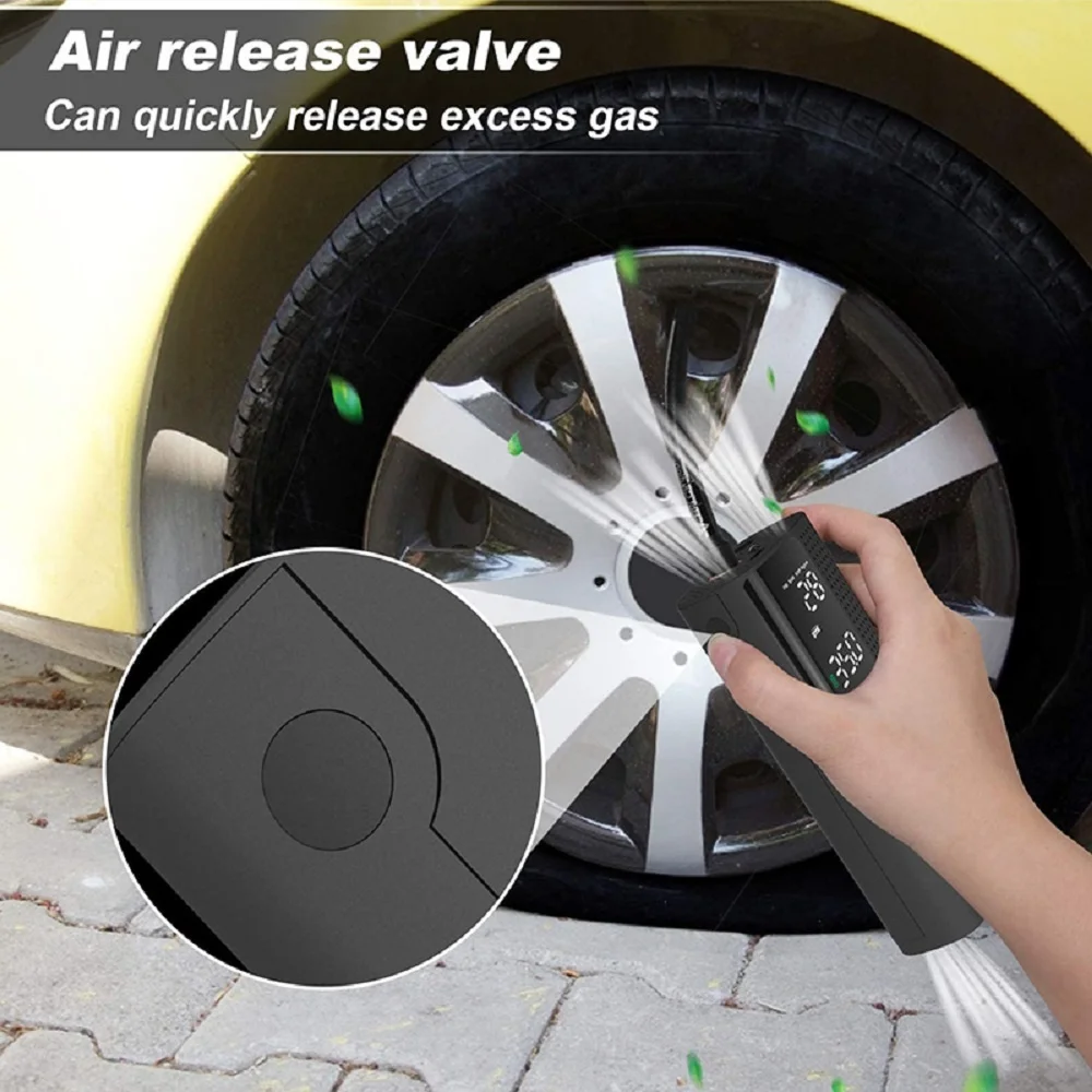 ✔The tyre inflation pump can measure, preset and monitor the tyre pressure and turn off automatically when the tyre default pressure value is reached