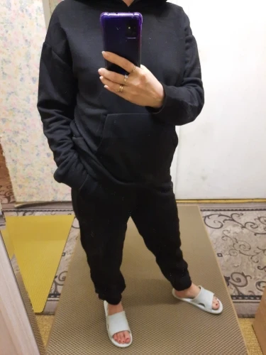 16 декабря 2021Доставка до Ростова НД 8 дней. Ношу 50-52 р-р (104-89-112), взяла по совету продавца 52 размер, штанишки сели отлично, не впритык, а вот толстовка очень большая. У меня рост 161 см, штанишки мне длинные. На рукавах и штанах для меня очень слабая резинка, на кисти не держится, руки проскакивают. Капюшон большой, удобный.Костюм пошит хорошо, запаха нет. Флис не толстый, мягкий, на Ростовскую зиму пойдёт. За такую цену для похода в бассейн и во дворе ходить очень даже хорошо. Дополню отзыв после стирки и носки.