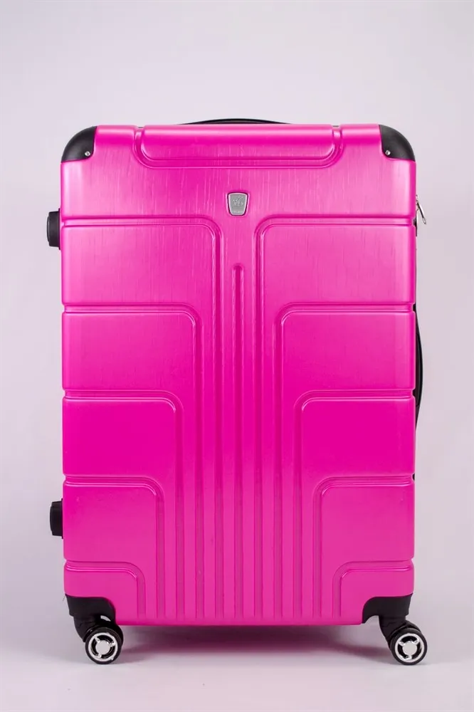 Чемодан ударопрочный пластиковый. Материал: 100% поликарбонат (PC) Цвет: Фуксия(малиновый) Габариты (см.): L-: 71х47х28 L: 75х49х29 ХL: 78х50х30 Объём (л.): L-: 95, L: 105, ХL: 115 Вес (кг.): 4,5 Производство: Россия Вид застежки: молния, кодовый замок Количество колёс: 4 спаренных колеса Свойства корпуса: ударопрочный корпус, влагозащищенный корпус О товаре: Чемодан изготовлен из сверхпрочного тройного поликарбоната (PC). Он служит дольше обычных чемоданов, потому что стойко переносит все падения и удары. Надежная алюминиевая ручка выдвигается и фиксируется в 3х положениях для удобства. Четыре сдвоенных колесика из полиуретана вращаются свободно на 360 градусов на металлических шарикоподшипниках, благодаря этому чемодан едет практически бесшумно. Есть удобные ручки для переноски: верхняя и боковая, кодовый замок. Внутри чемодана: 2 отделения, в них - ремни для фиксации вещей и перегородка на молнии.