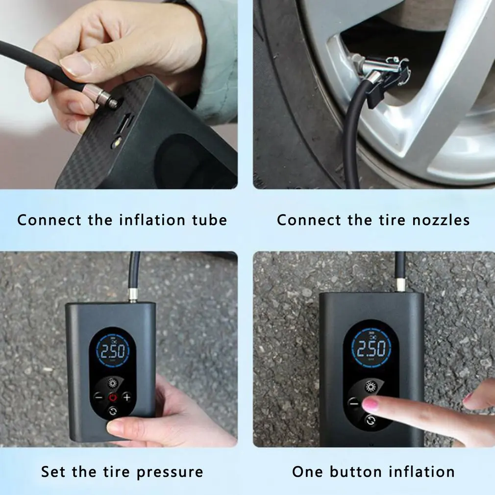 Он совместим с различными насадками, подходит для различных надувных предметов, таких как профессиональные велосипедные шины, автомобильные шины для домашнего использования, шины для мотоциклов, шины для электровелосипедов, шары, кольца для плавания, надувные игрушки и другие надувные изделия.