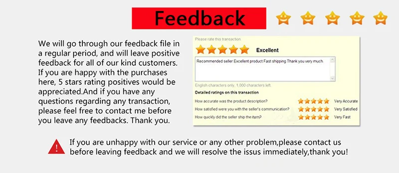 2. Если вы удовлетворены нашими товарами и нашим обслуживанием, пожалуйста, оставьте положительный отзывы (5 звезд) для нас, это очень важно для нас.