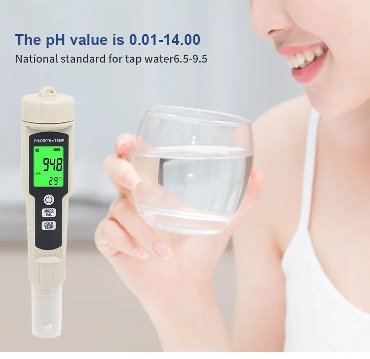 Тестер качества воды, 4 в 1 цифровой ЖК-дисплей PH/ORP/H2/измеритель температуры, 0.01 разрешение, для питьевой воды, гидропоники, аквариумов, бассейнов
