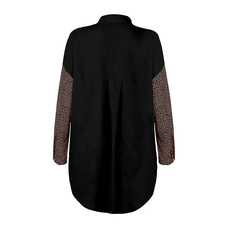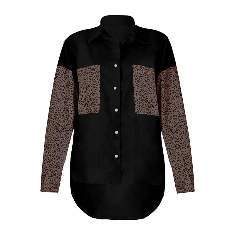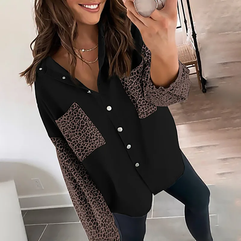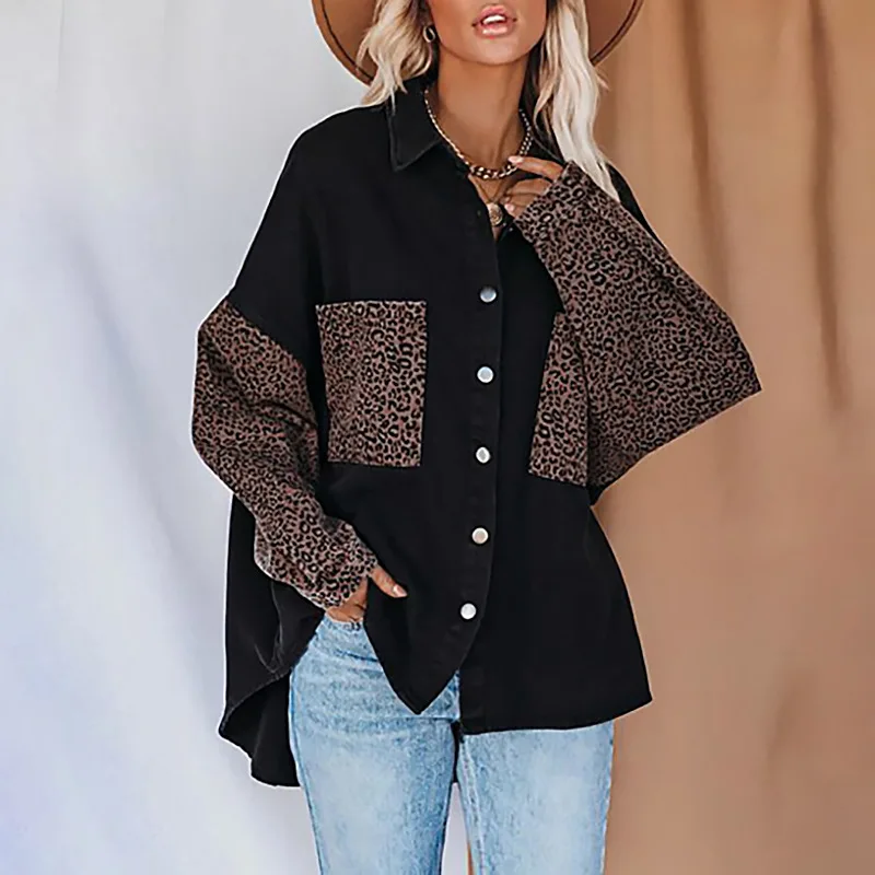 Черная куртка, куртка на пуговицах, Свободная Женская, Повседневная Женская куртка, модная женская одежда, приталенное пальто, Леопардовый принт, длинный рукав, женская блузка, Женское пальто осень 2021, женская джинсовая рубашка