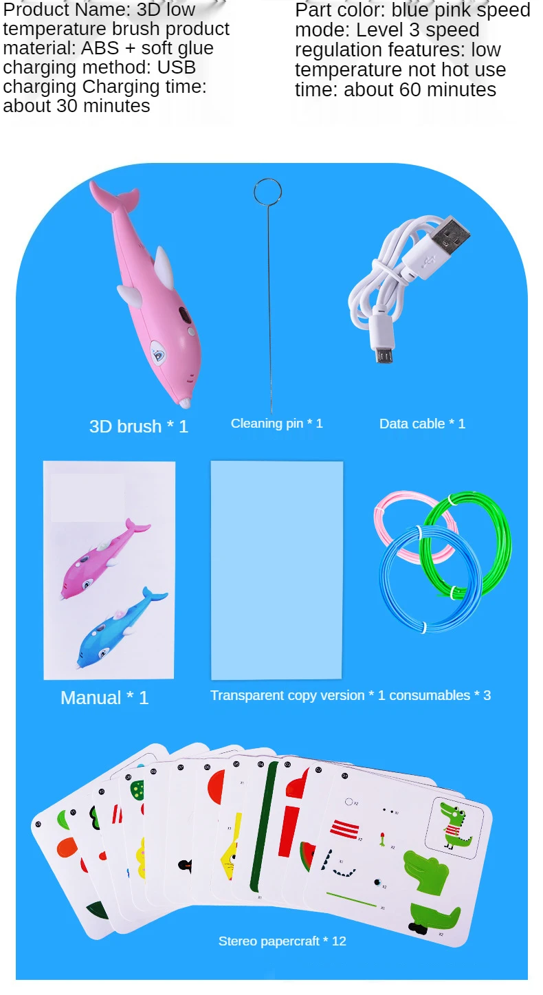 Содержит: 1 * ручка, 1 * руководство, 1 * USB кабель, 12 копировальных карт, 3 цвета расходных материалов для печати (каждый 2 м), 1 * драга иглы