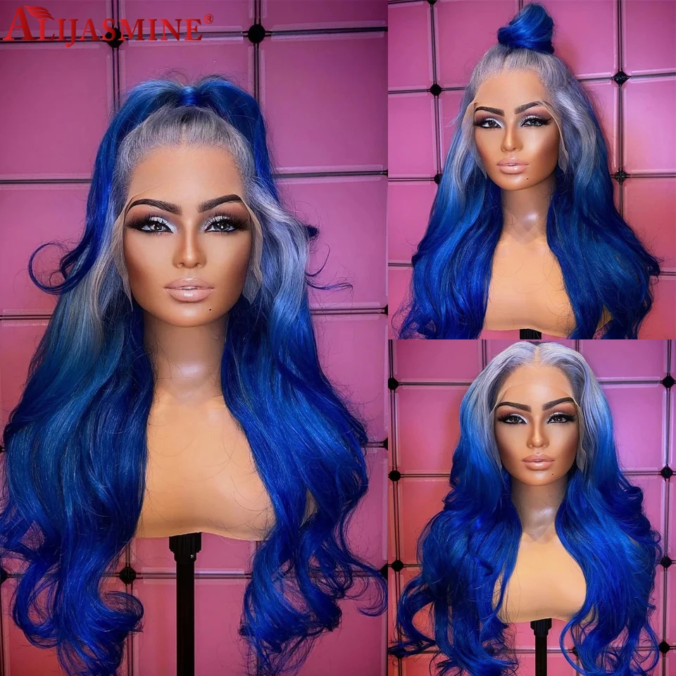 Объемная волна серый Омбре человеческие волосы фронтальные парики шнурка для женщин Бразильский синий цветной HD фронтальный парик шнурка прозрачные парики шнурка 180 парики