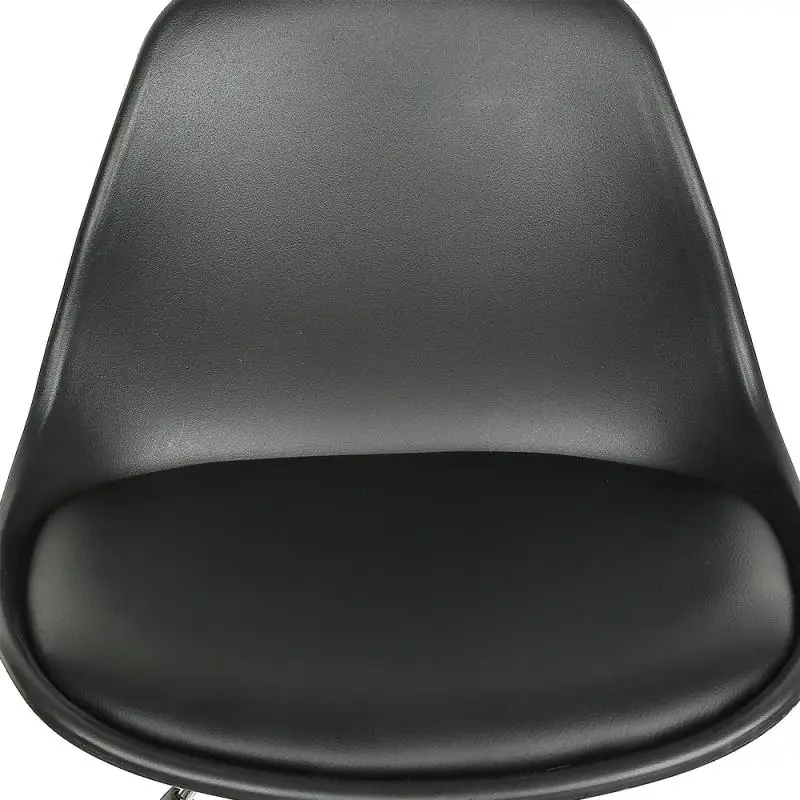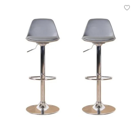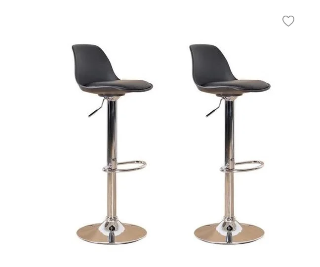 Пара черных барных стульев, хромированная металлическая структура, вращение на 360 градусов, регулируемая по высоте, наполненная высокоэластичной поролоновой губкой, плотность: 24 кг/м3, внешний слой из искусственной кожи (ПУ) материал