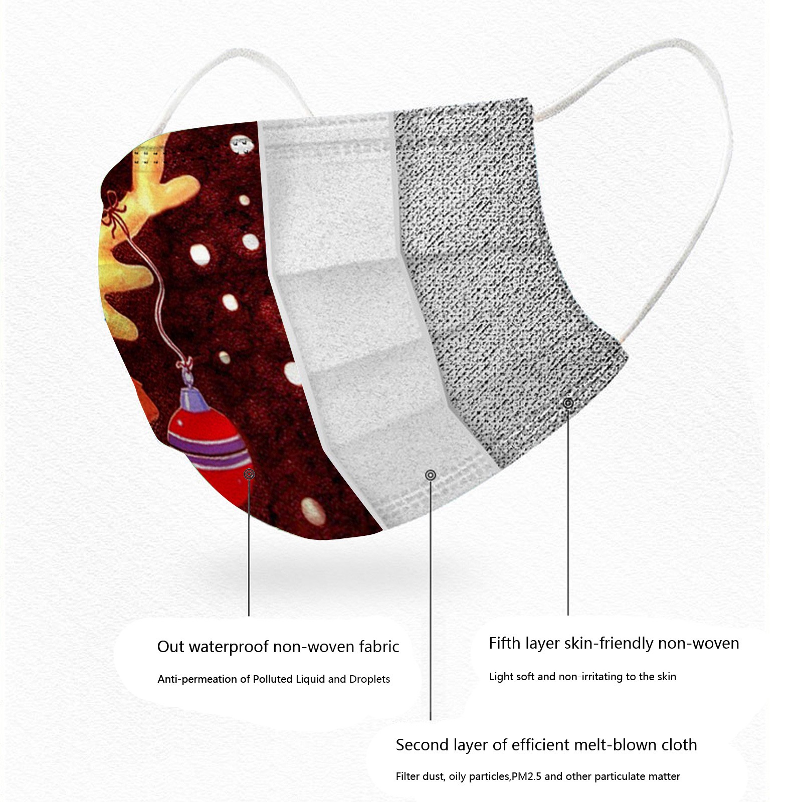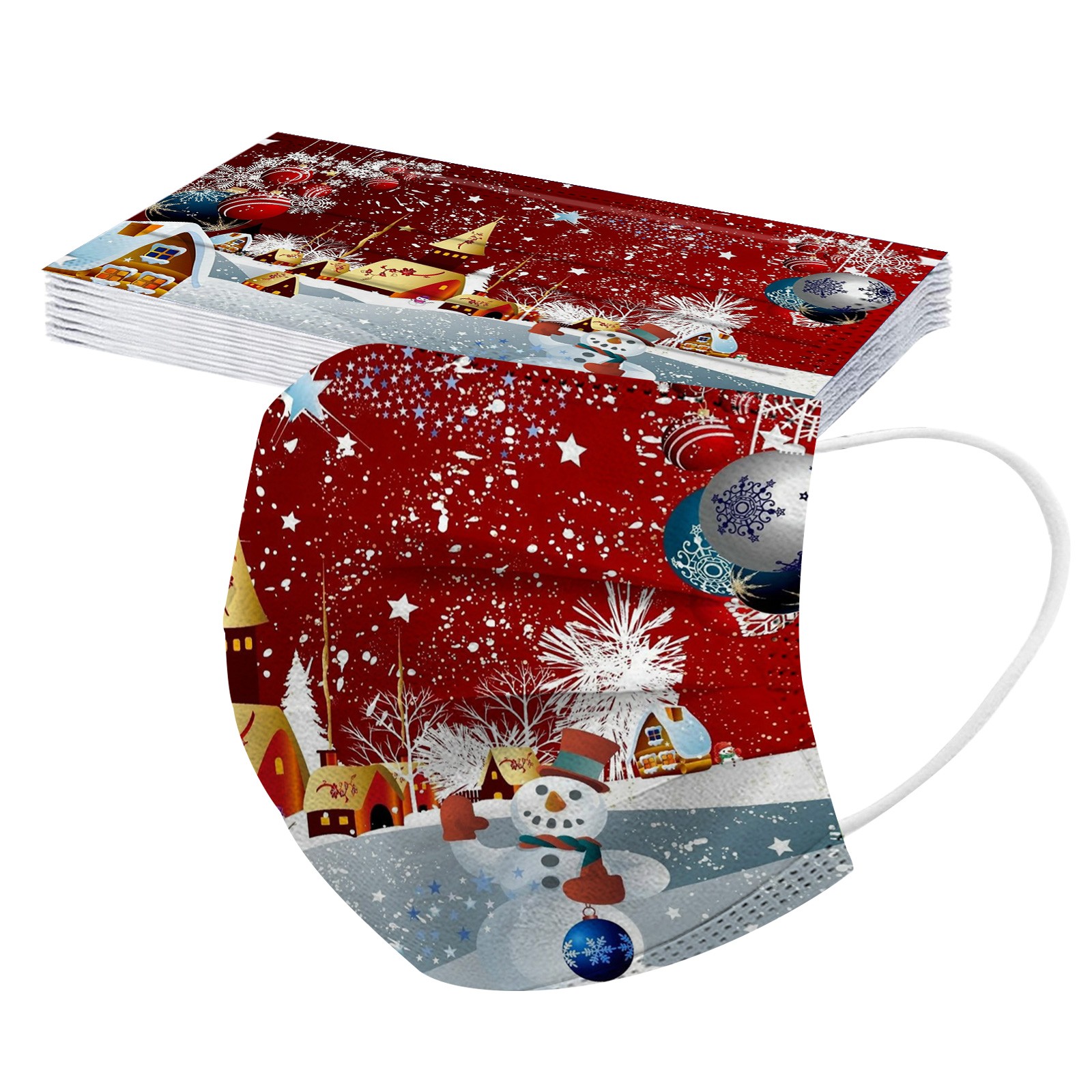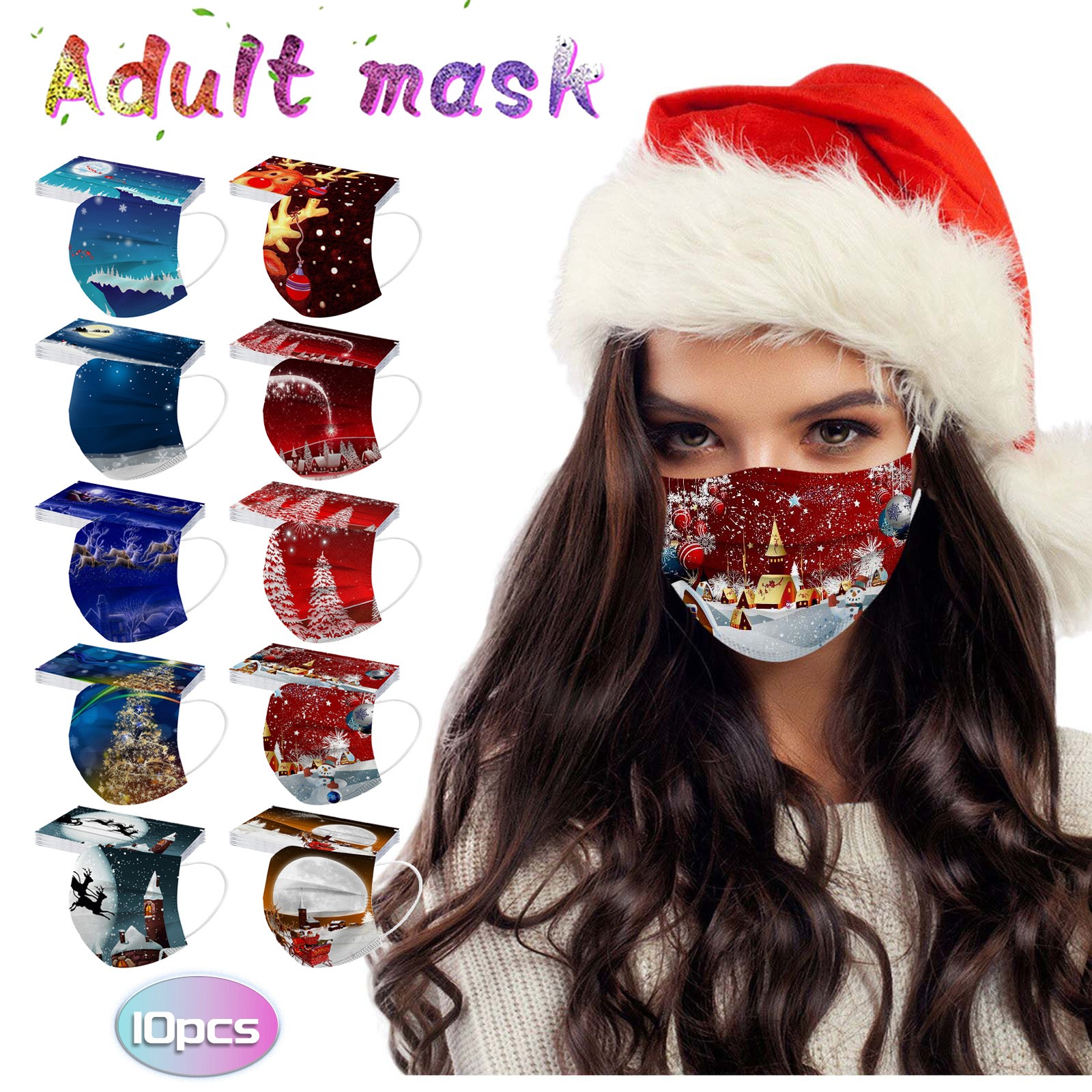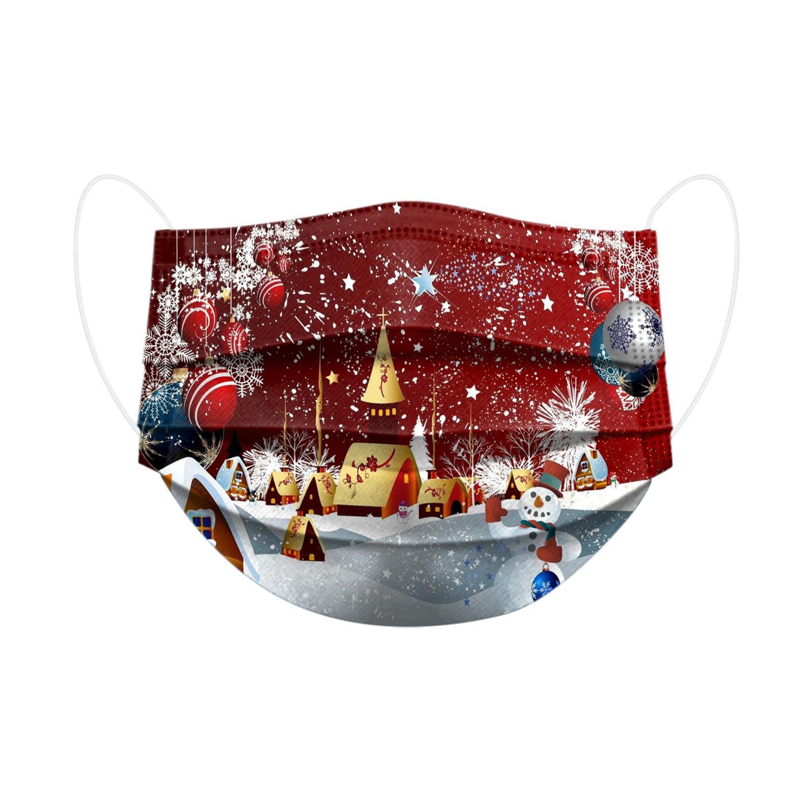 10 шт. Рождественская модная одноразовая Защитная трехслойная дышащая маска для лица для взрослых