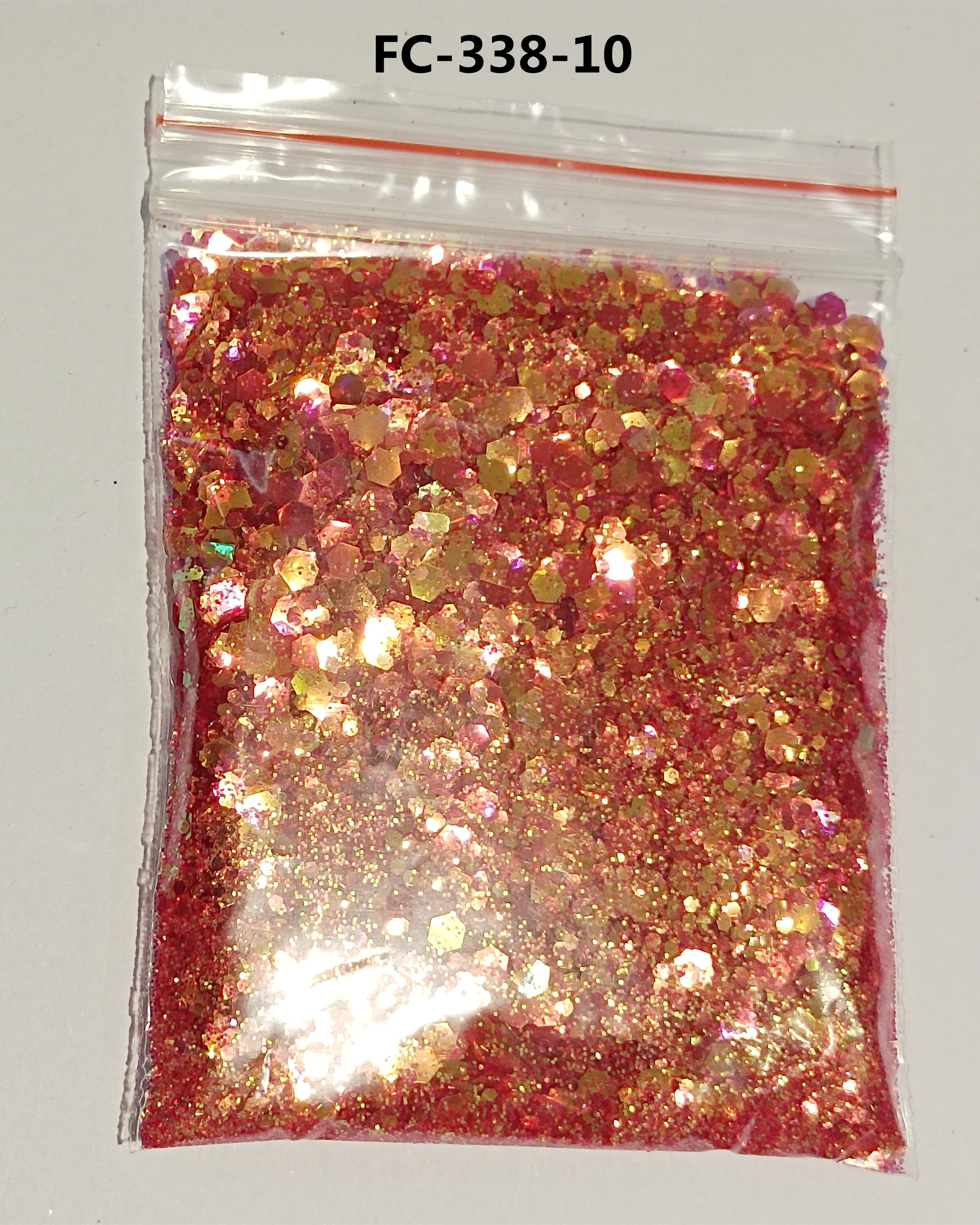 10 г/пакет, голографические, смешанные, в форме Шестиугольника, массивные, блестки для ногтей, блестки, блестящие хлопья, ломтики для маникюра, тела/глаз/лица, блеск FC333
