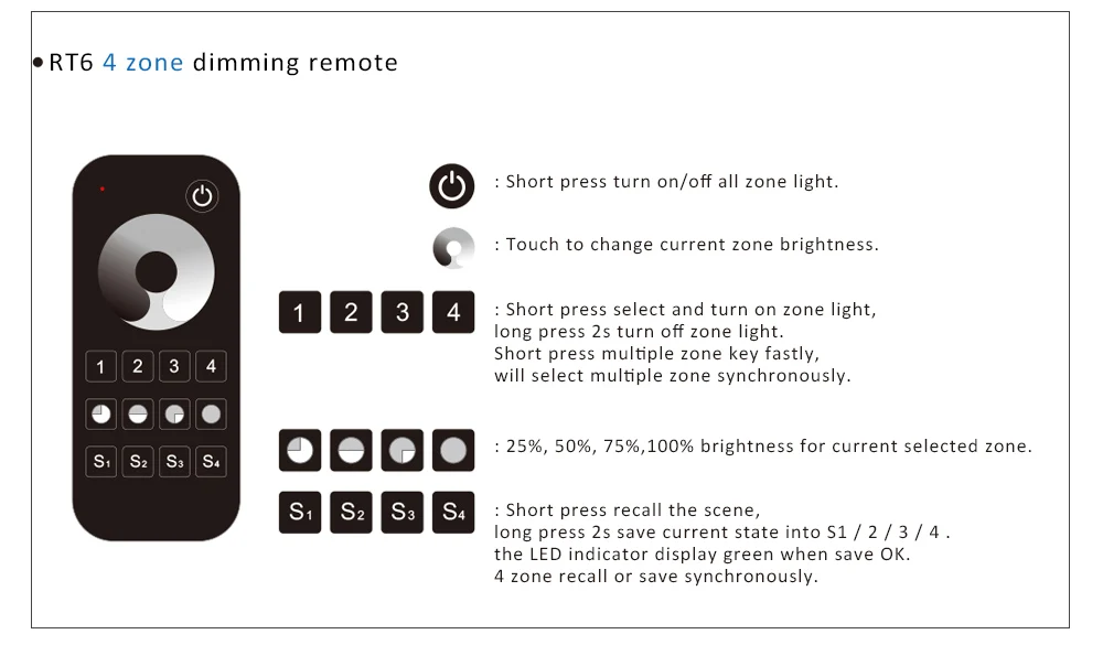 ● Совместимость с пультом дистанционного управления Skydance 2,4G с одной зоной или несколькими зонами затемнения.
