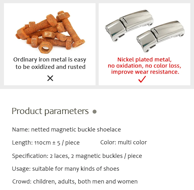 * 2 шнурка (1 пара) и 2 "серебристого" магнитного металлического замка, (обувь в комплект не входит!)