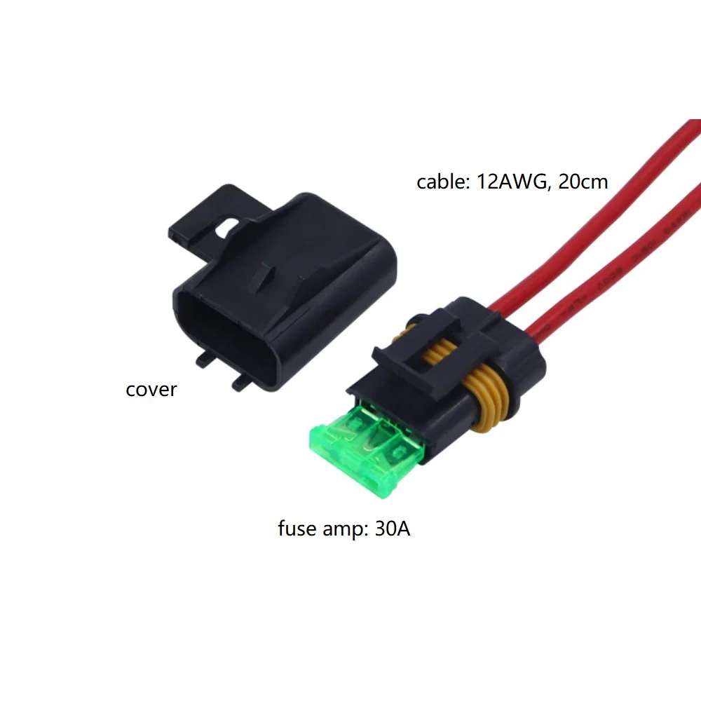 С предохранителем: 30AКабель: 12AWGДлина: 20 смНапряжение: 24 ВКоличество: 4 шт./лотПримечание:Допускается погрешность в измерениях +/- 1 ~ 2 мм.Смотрите так же другие товары: