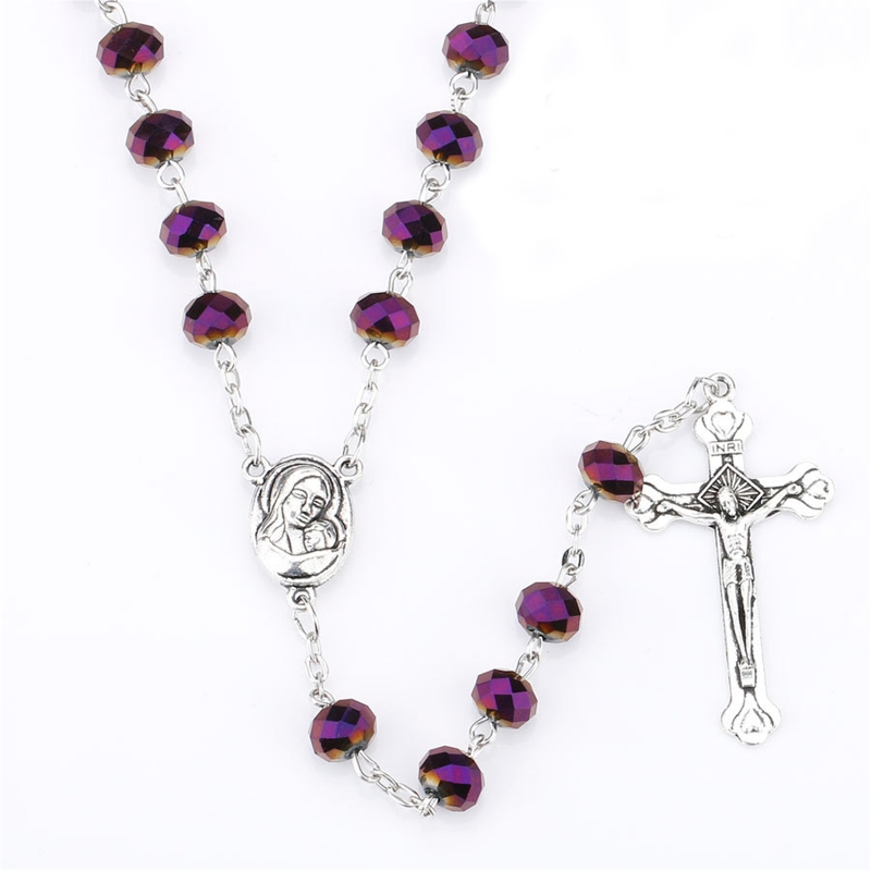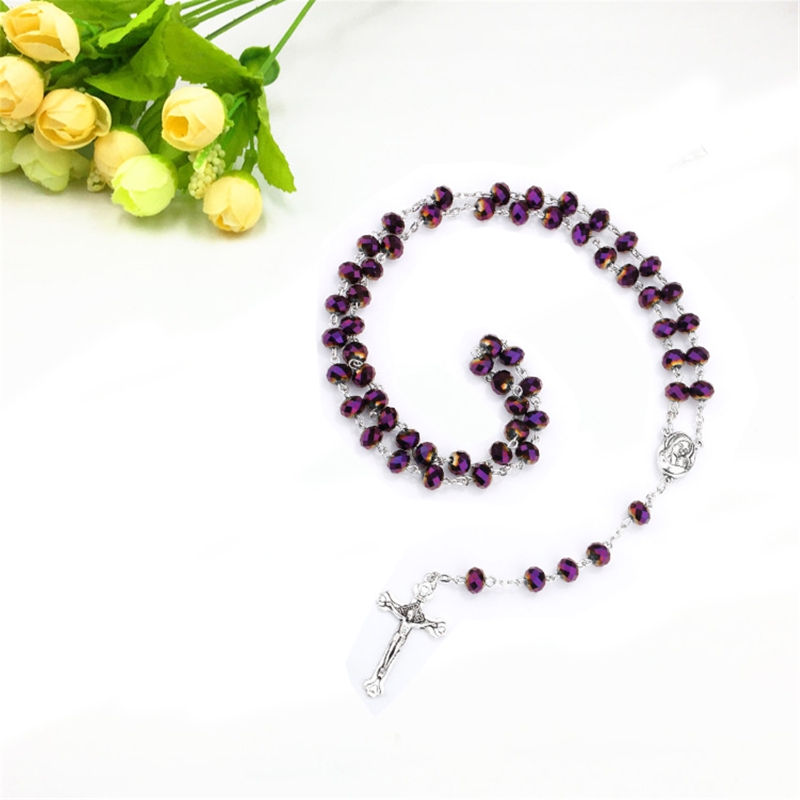 T5EF фиолетовое Кристальное ожерелье-четки из бусин католическая Дева святая земля ребенок христианский Иисус крест ожерелья Религиозные ювелирные изделия для мужчин