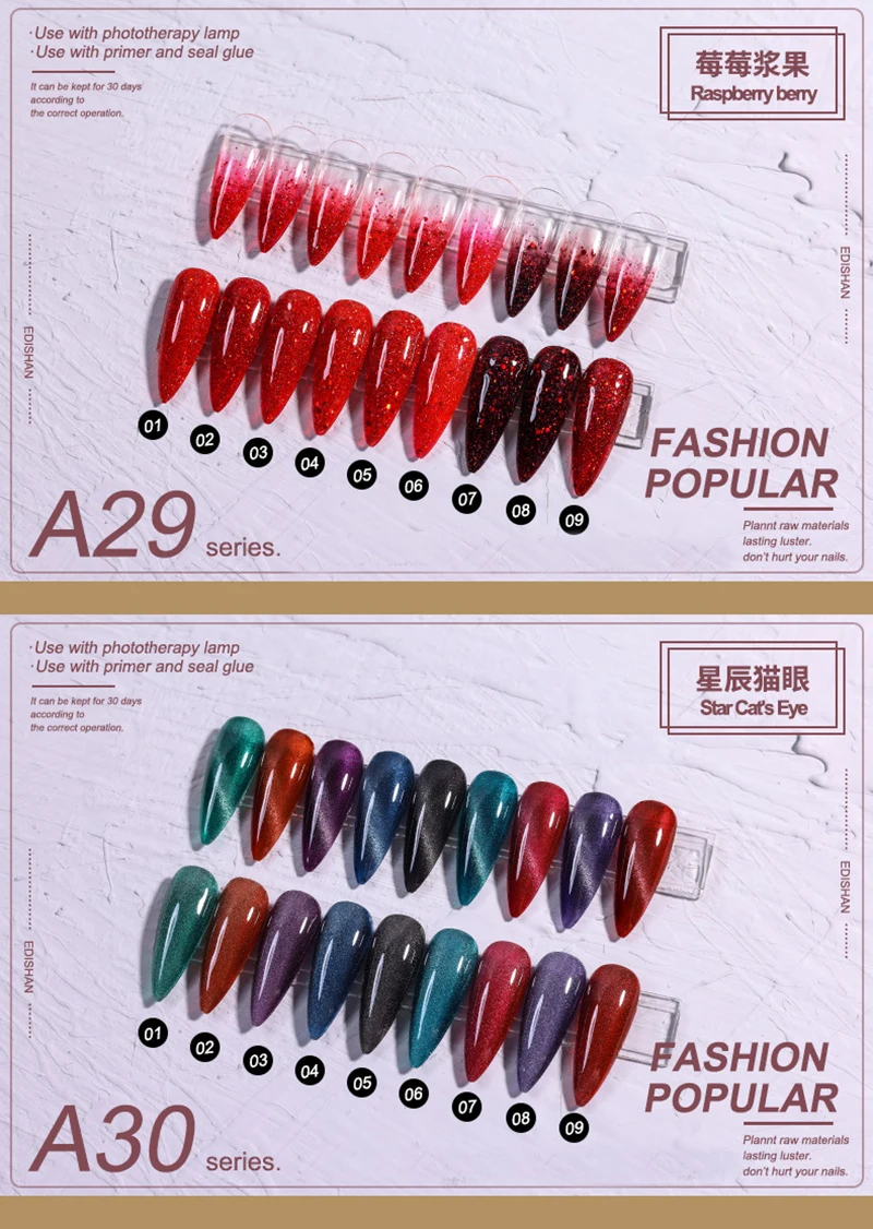 3. О Гель-лак для ногтей с эффектом «кошачий глаз», пожалуйста, нанесите гель для ногтей, используйте магнитную палку, затем вы можете увидеть правильный цвет, как описано.