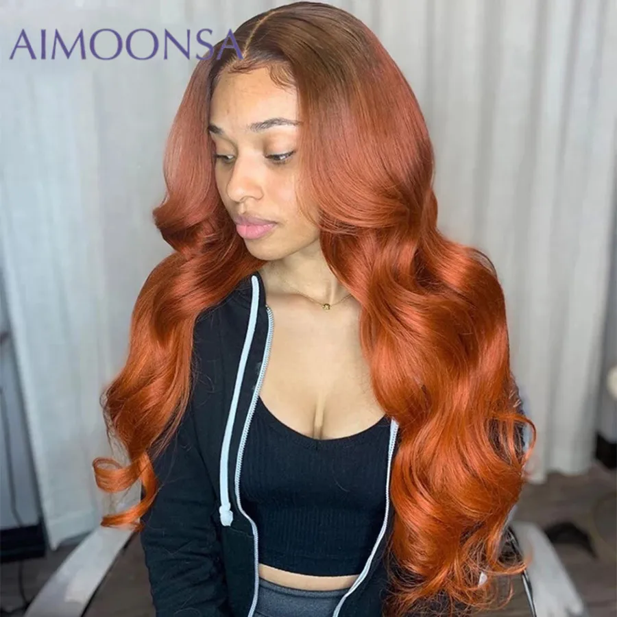 Эффектом деграде (переход от темного к оранжевый имбирь Цветной парики объемная волна 13x4 синтетические волосы на кружеве парик человеческих волос парики для чернокожих женщин 150% индийские волосы Remy