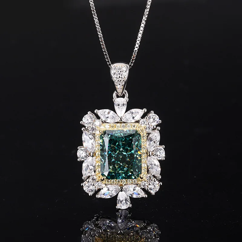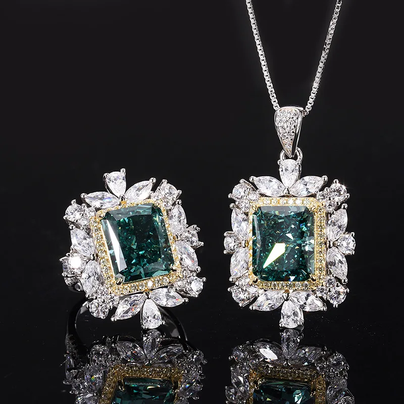 10*12 мм мятно-зеленое высокоуглеродное кольцо с бриллиантом, набор женских серебряных украшений S925, подарок на свадьбу, день рождения