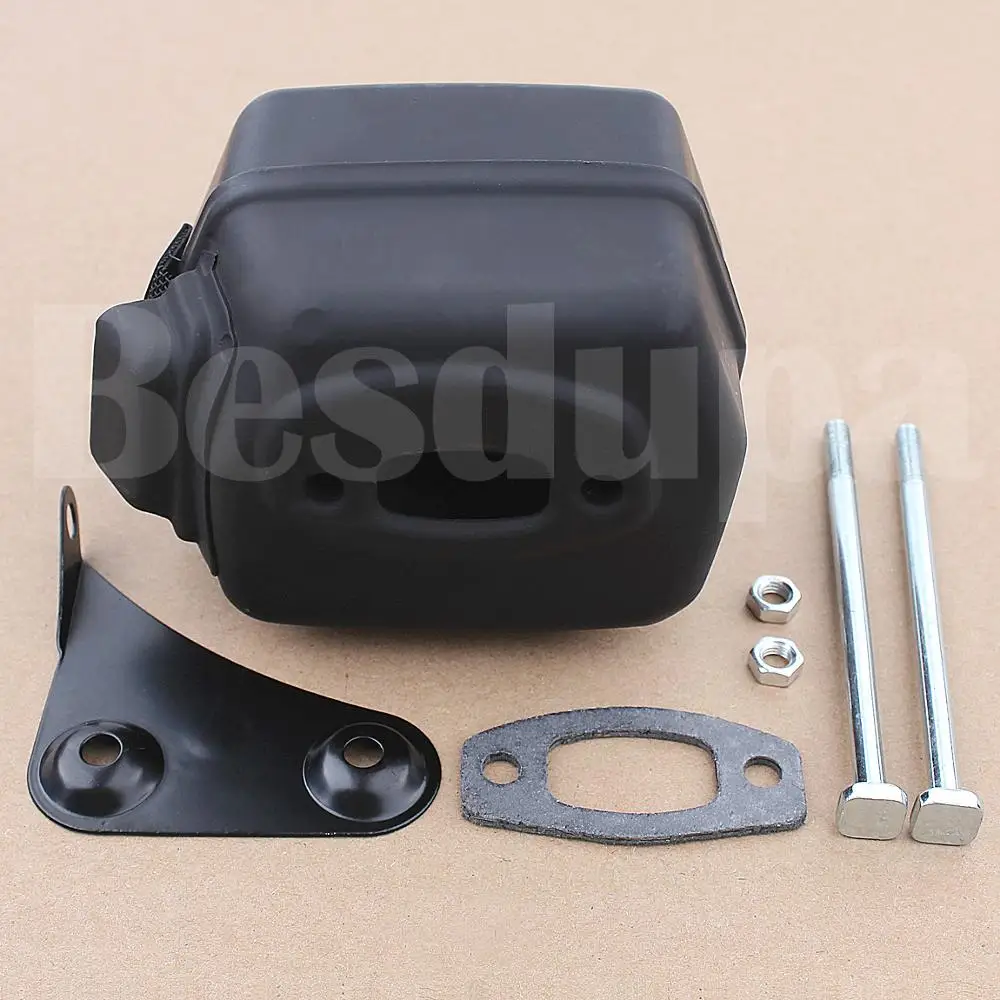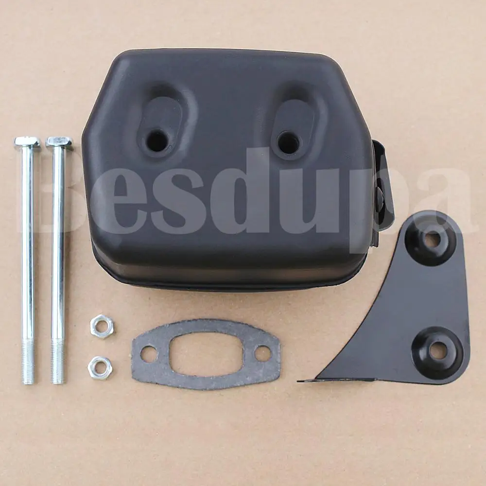 1 x Exhaust Muffler, 1 x Muffler Support Bracket, 1 x Muffler Gasket, 2 x Muffler Bolt, 2 x Muffler Nuts