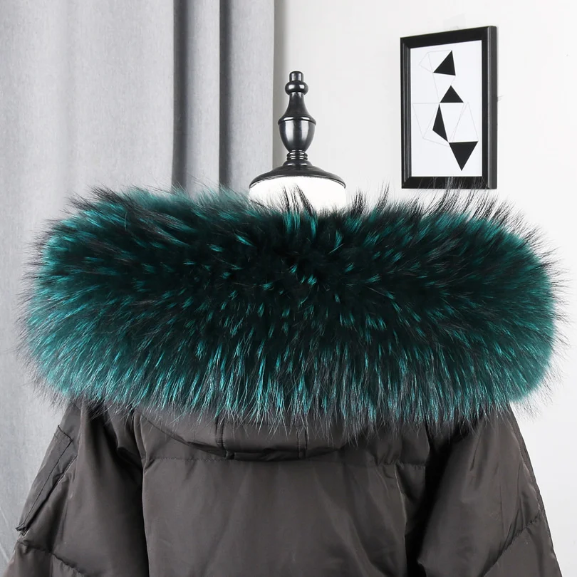 100% натуральный меховой воротник, роскошный Теплый шарф из натурального меха енота, женский воротник из натурального меха, меховой воротник, шарфы, Большая Меховая шаль, мужская куртка
