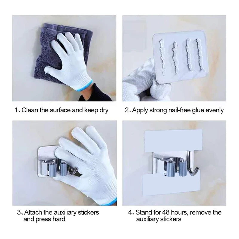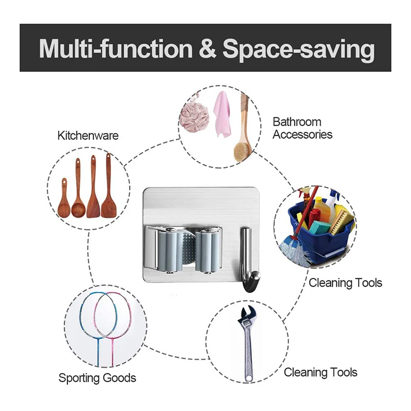 [Легко установить] вам не придется беспокоиться, что захват метлы повредит стену дома. Не требует сверления, чтобы установить его, поставляется с сильными клеями, он может быть установлен в течение нескольких секунд.