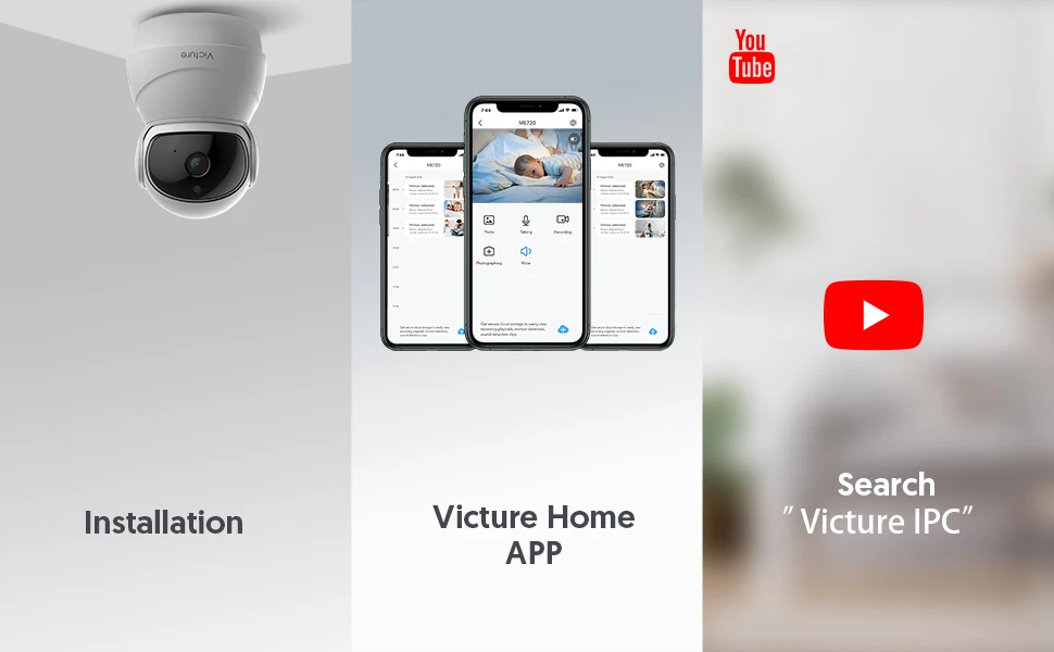 С 355 горизонтальным и 100 вертикальным диапазоном вращения, вы можете контролировать ориентацию внутренней камеры на вашем телефоне, следите за своим домом в любое время в любом месте, подходит для ухода за пожилыми людьми/детьми/домашними животными/кухнями/комнатами