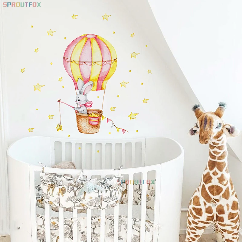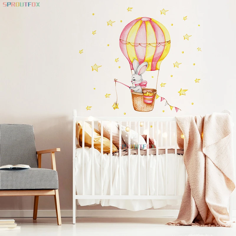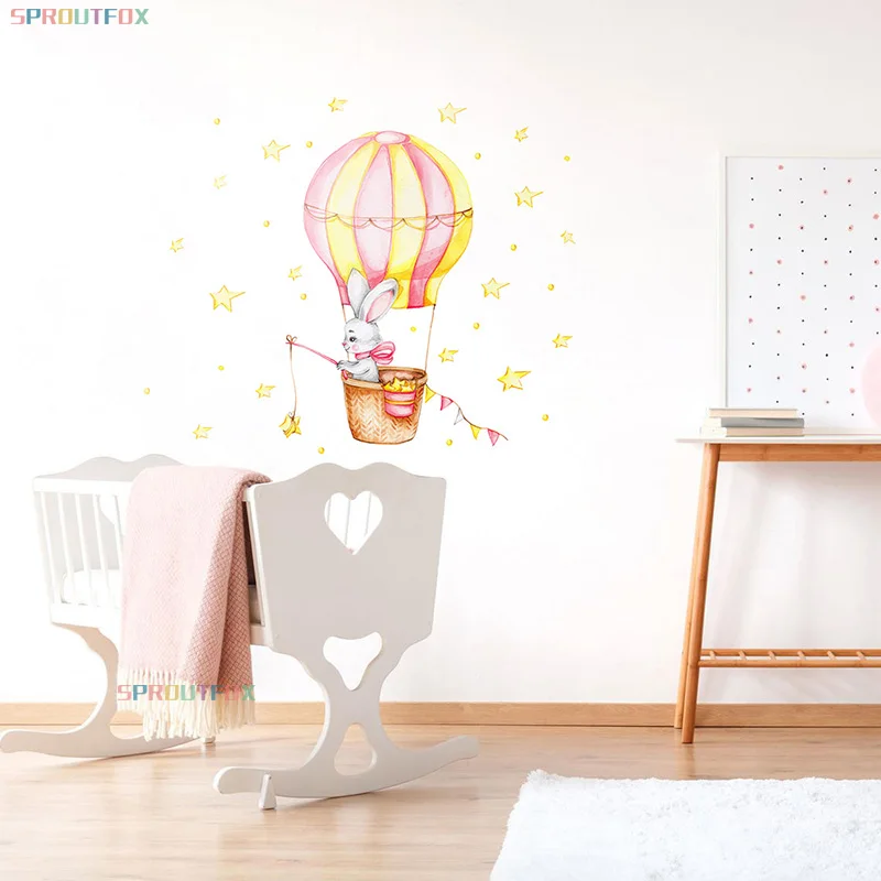 Товар: милый стикер на стену в виде кролика воздушный шар настенные наклейки для детской комнаты детская спальня