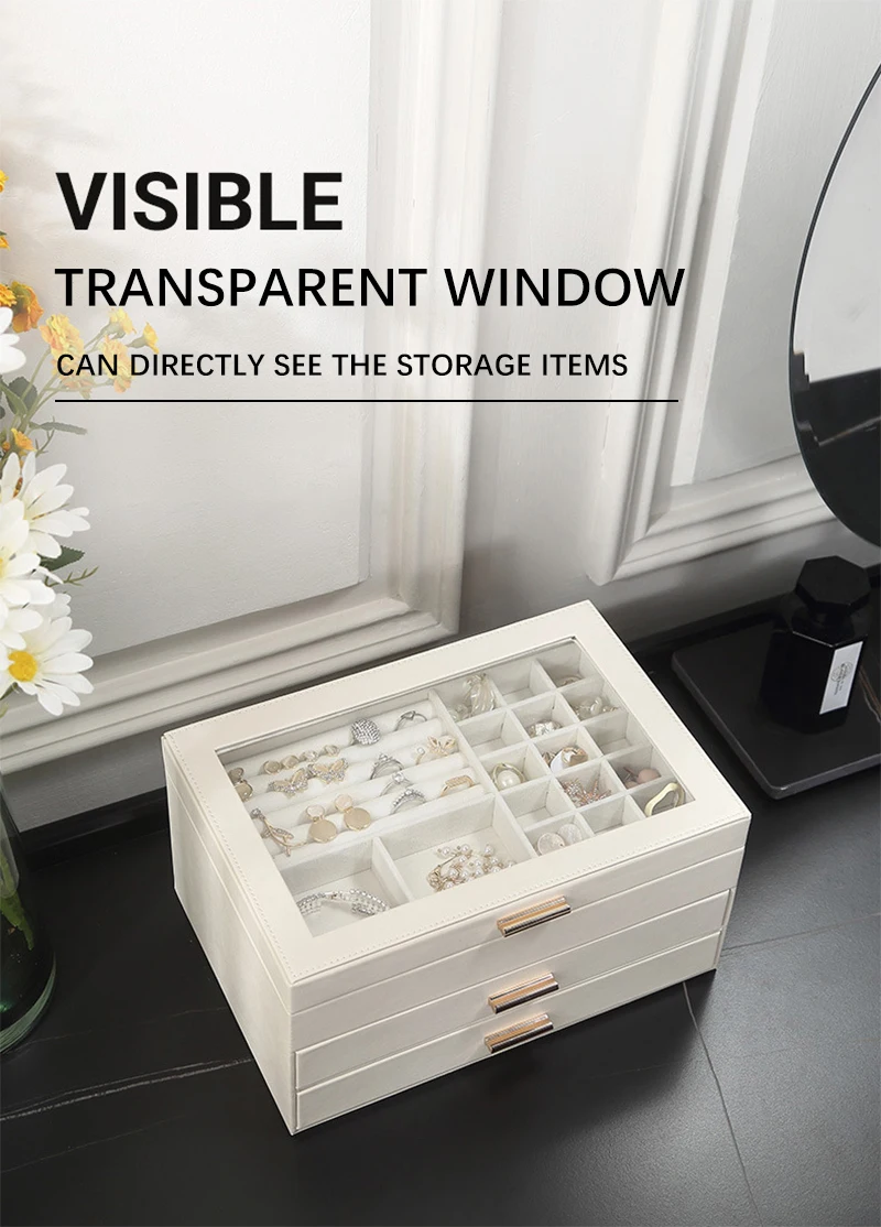 QM Новый трехслойный органайзер для ювелирных изделий, ожерелье, серьги, кольцо, ювелирная коробка, упаковка, искусственная кожа, для хранения Joyeros Organizador De Joyas