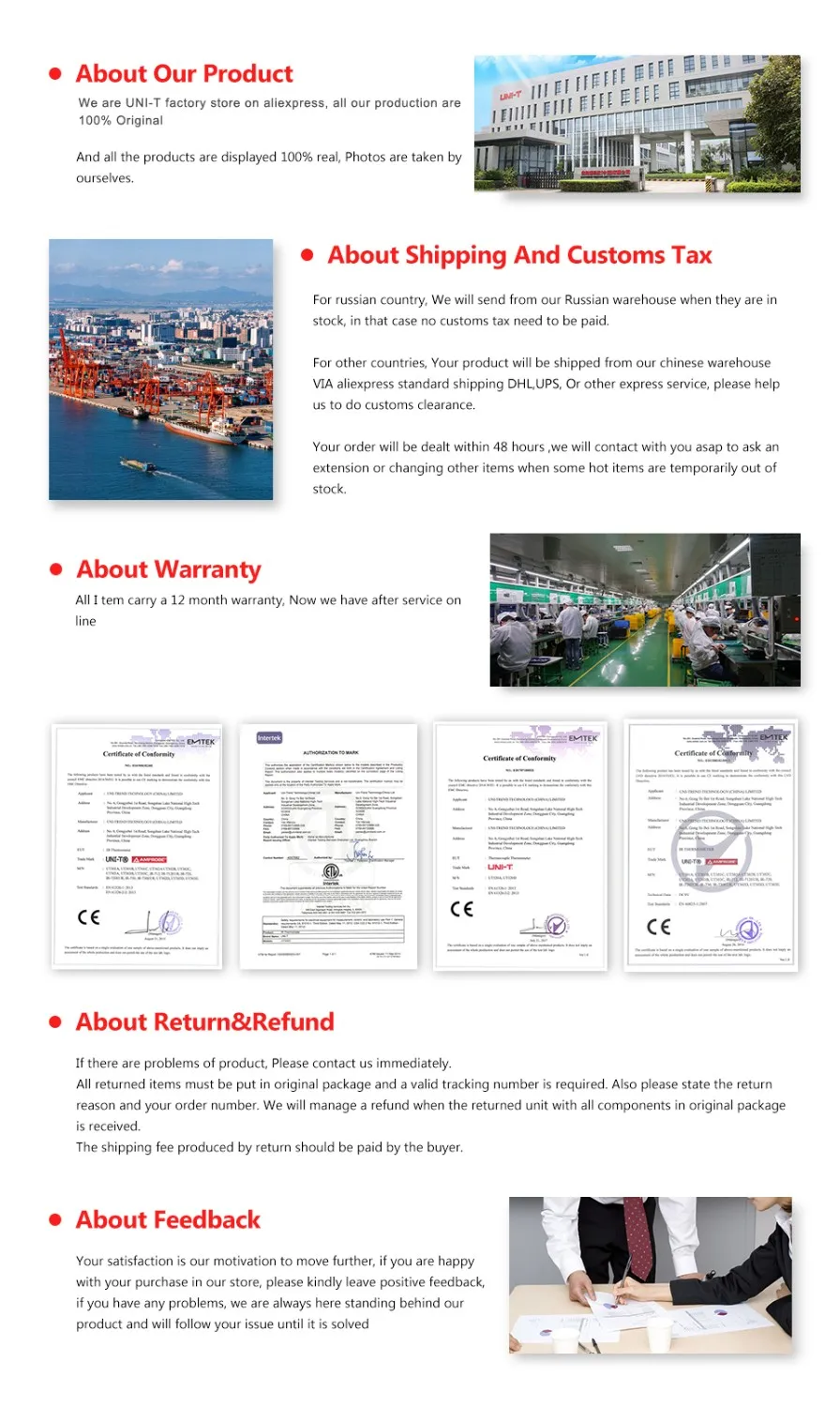 Магазина UNI-T Factory Tools Store работает с 26.02.2019. его рейтинг составлет 96.74 баллов из 100. В избранное добавили 39731 покупателя. Средний рейтинг торваров продавца 4.9 в продаже представленно 399 наименований товаров, успешно доставлено 20219 заказов. 10122 покупателей оставили отзывы о продавце.