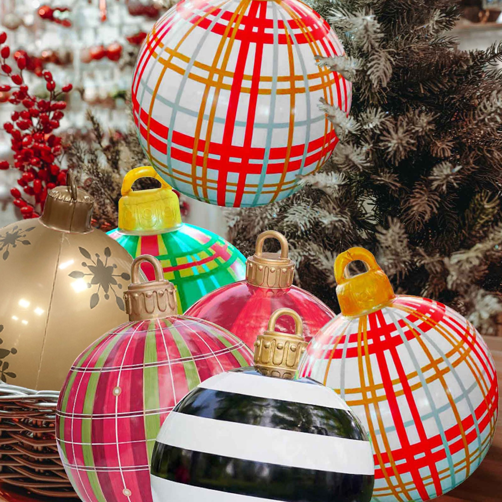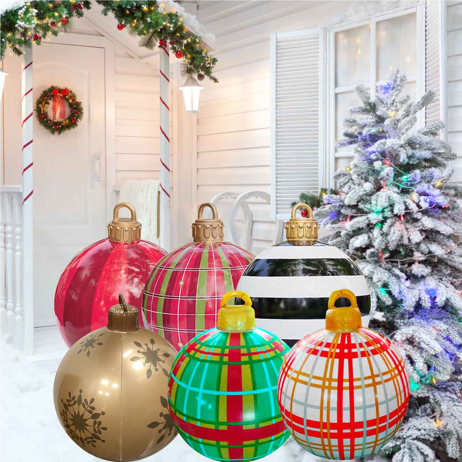 - Декор: огромные надувные украшения для рождественских шариков, воздушные шары с принтом «Счастливого Рождества», зеленые листья на шарике, добавить атмосферу фестиваля, надувные игрушки, идеально подходят для использования в помещении/на открытом воздухе, пусть ваш дом полон рождественской атмосферы.