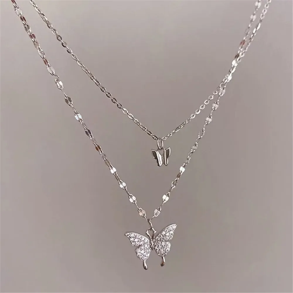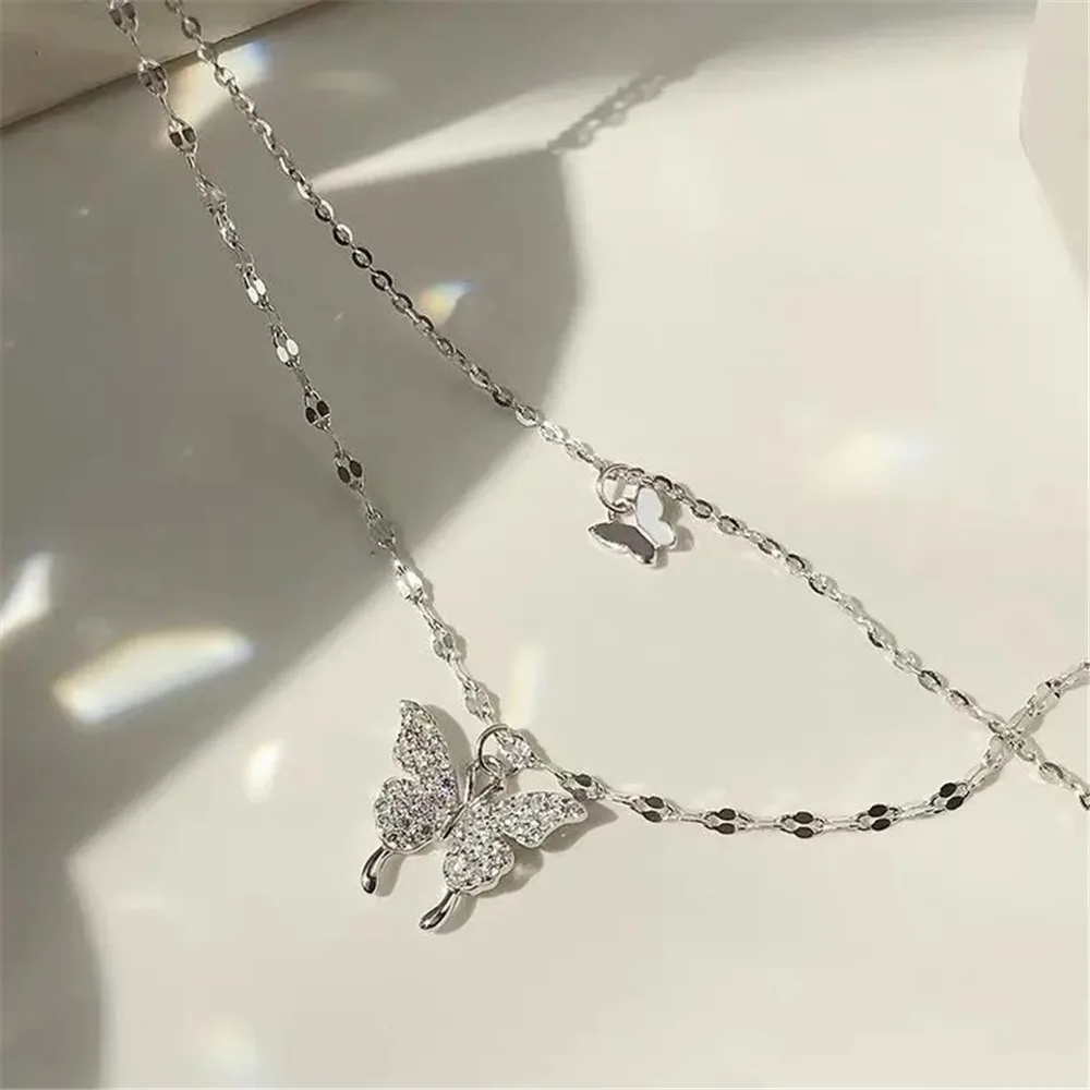 2022 Новое корейское модное серебряное блестящее ожерелье с бабочкой, женское изысканное Двухслойное ожерелье с цепочкой для ключицы, ювелирные изделия, подарки