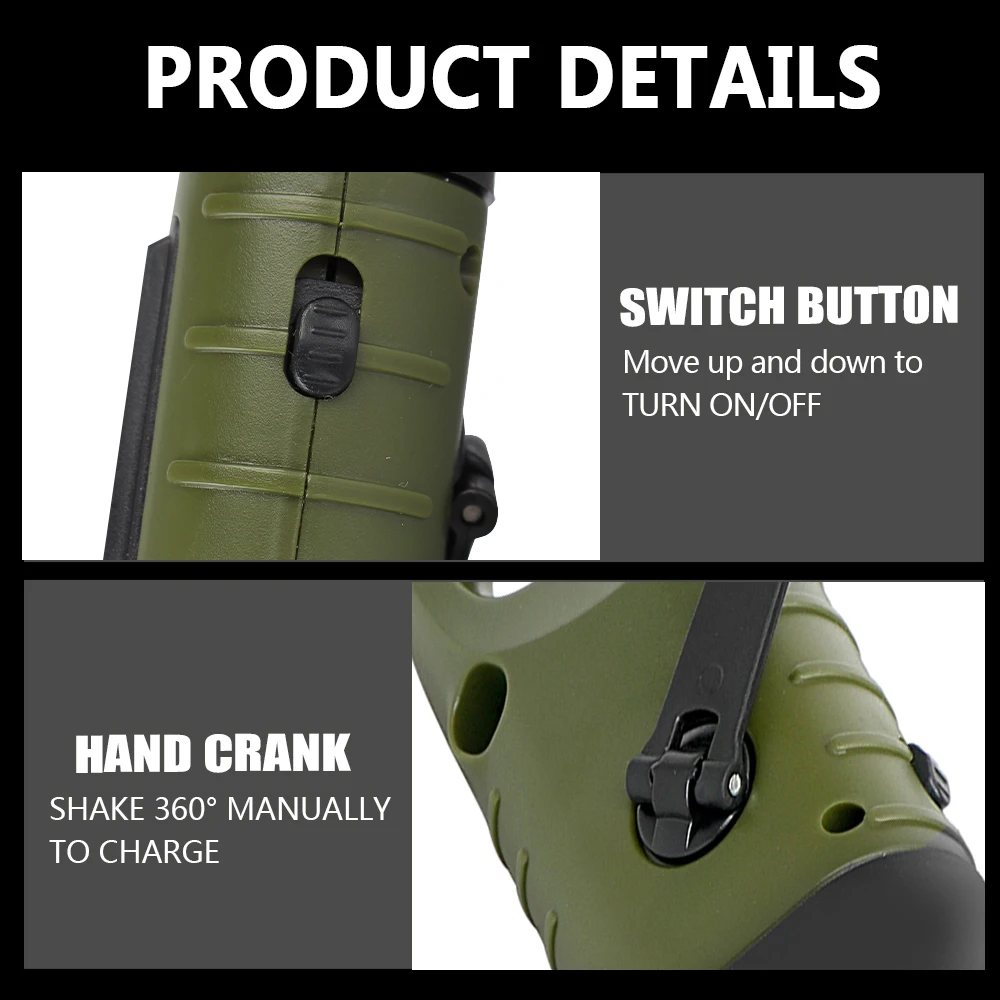 Поверните рукоятку при 2 турах в секунду для зарядки аккумулятора