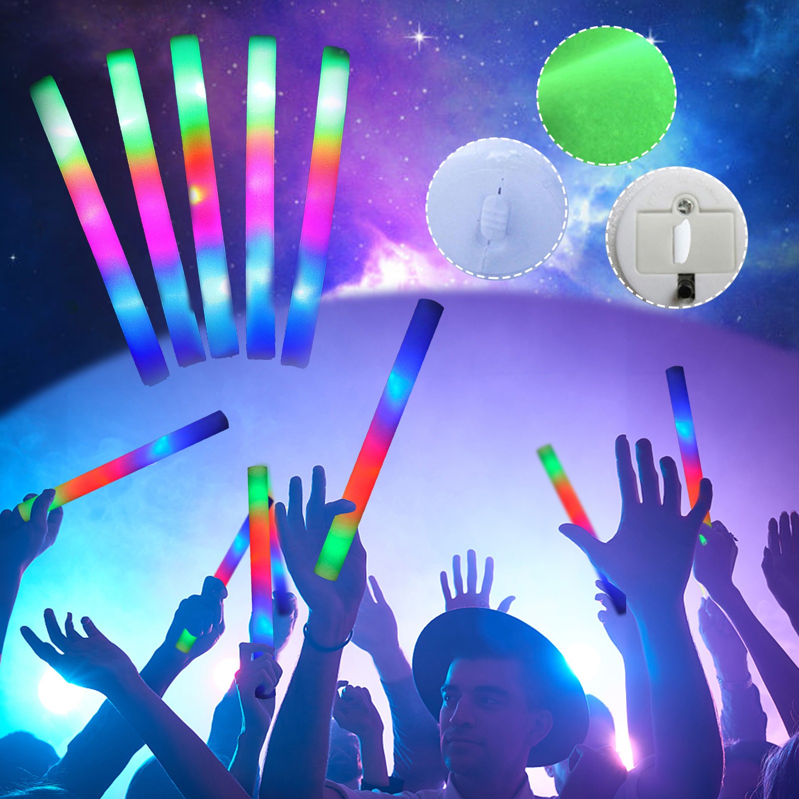 Эти Яркий светильник с пенными палочками-популярный выбор для дней рождения, Концерты, свадьбы, фестивали, светящиеся вечерние, ночная жизнь, Рейфы, Рождество Праздники, бары и другие мероприятия.