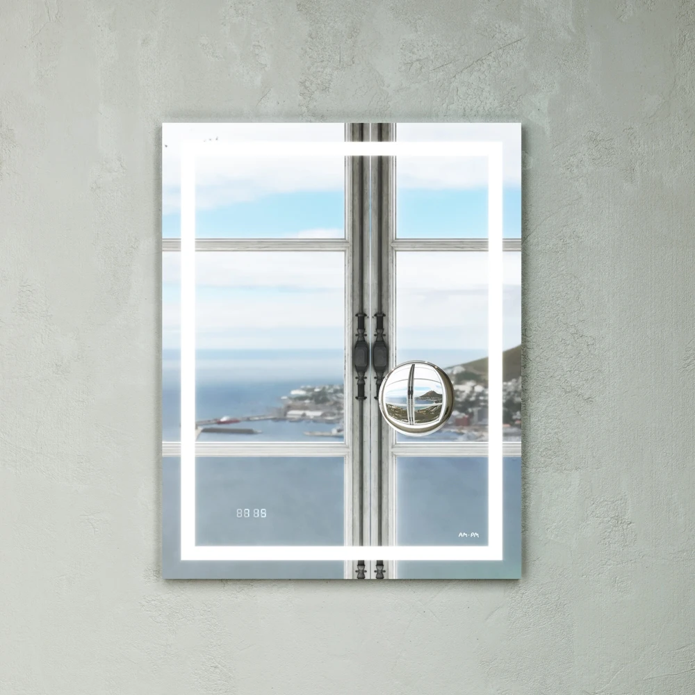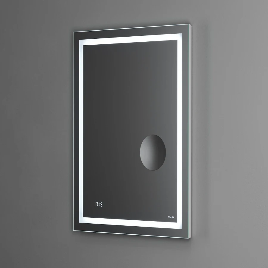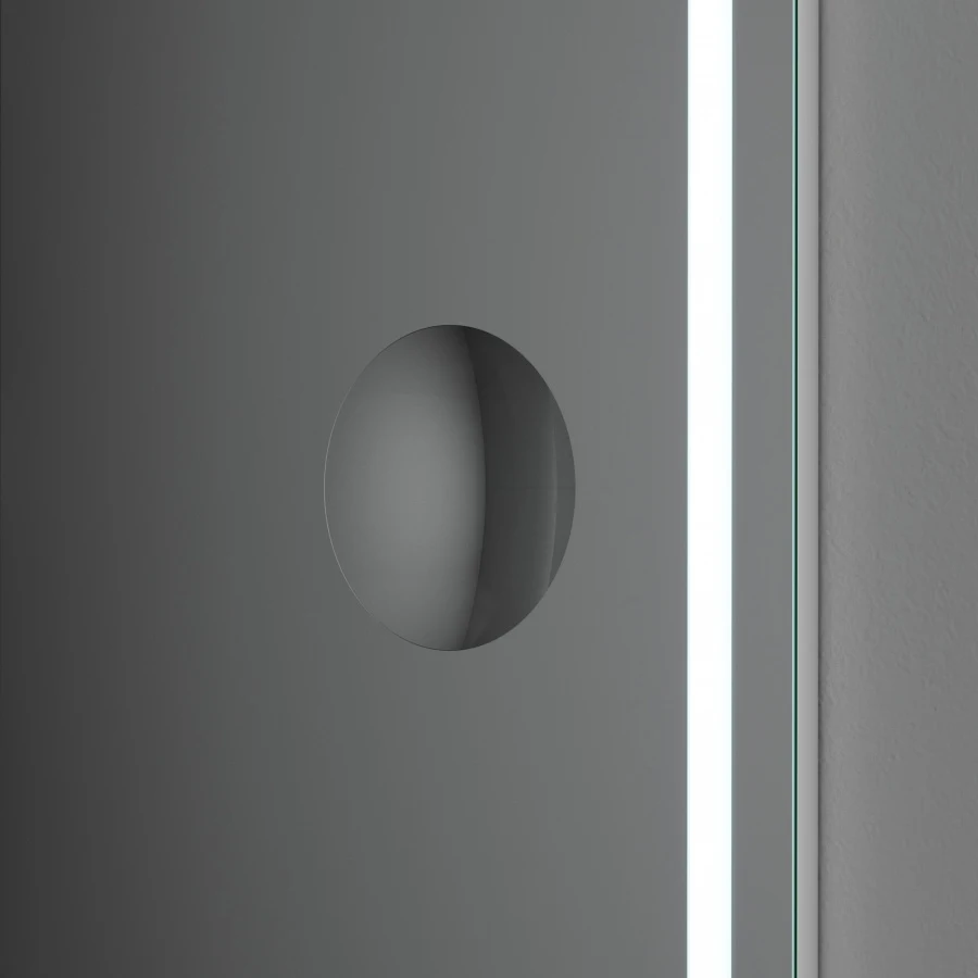 Скрытый механический выключатель сохраняет эстетическую целостность дизайна зеркала, а также гарантирует отсутствие отпечатков пальцев на зеркальном полотне