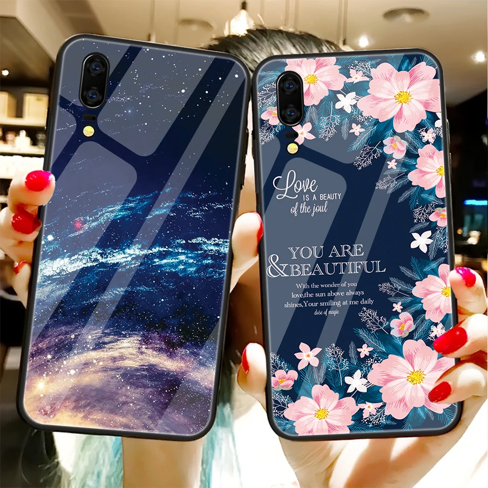 Чехол из закаленного стекла для Huawei P50 P40PRO P20Lite Mate20Lite противоударный цветной стеклянный чехол для Nova 3i