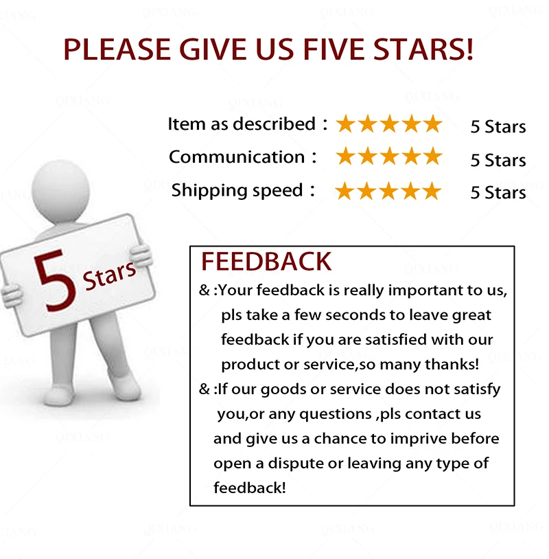 Послепродажное обслуживание: по любым вопросам о продукте, пожалуйста, свяжитесь с нами. Мы свяжемся с Вами как можно скорее. Мы работаем, чтобы предоставить вам высококачественные продукты и услуги. Если вы удовлетворены нашей продукцией, пожалуйста, дайте 5 звезд и положительные отзывы. Это побудит нас сделать лучше. Спасибо!