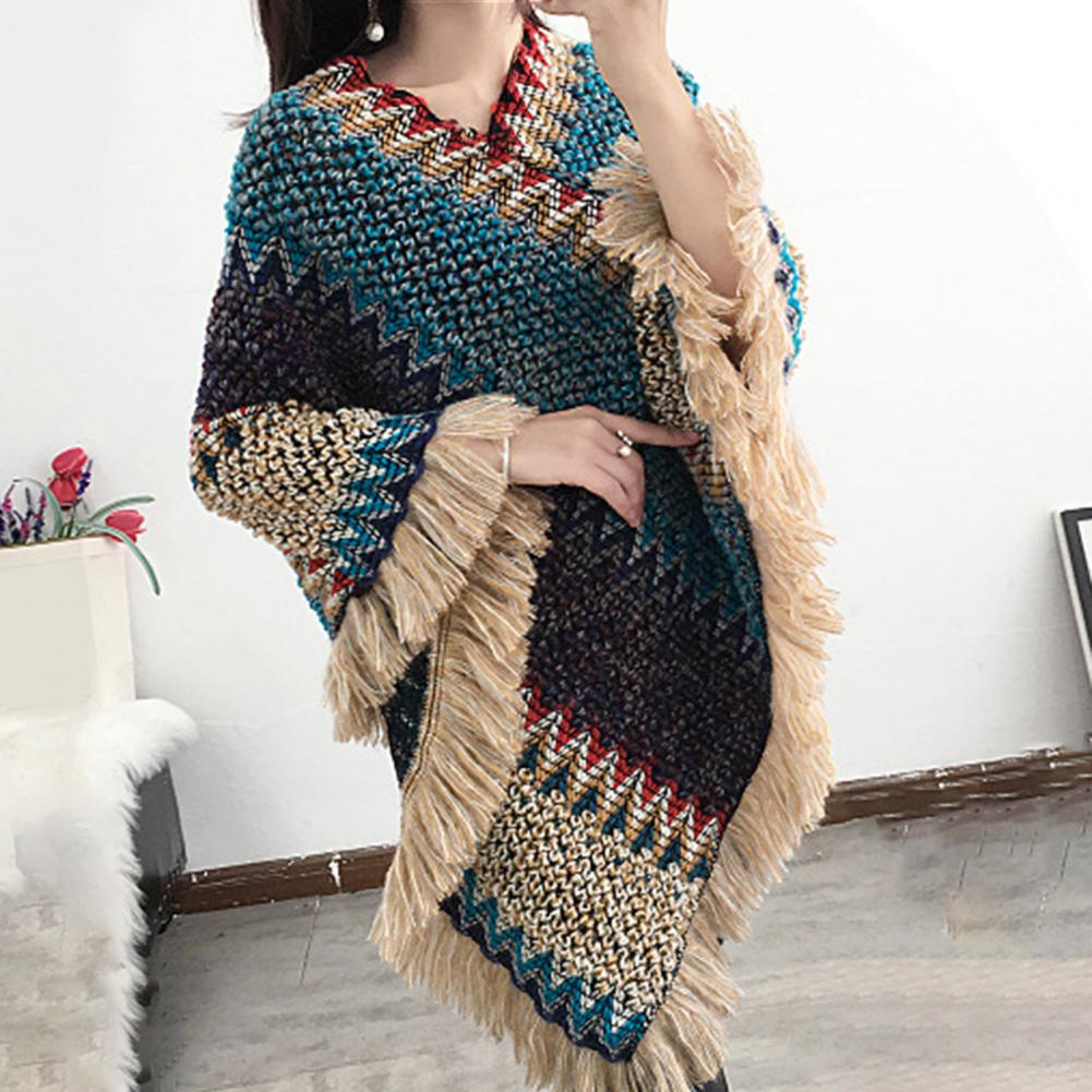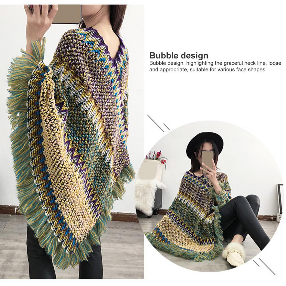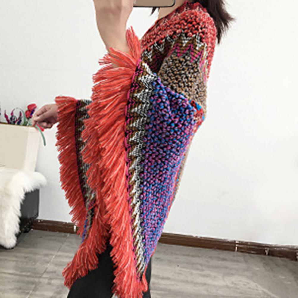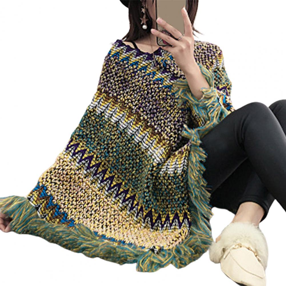 Женская накидка, вязаное пальто с кисточками, осенне-зимнее разноцветное пальто с v-образным вырезом и асимметричным подолом, свитер для повседневной носки