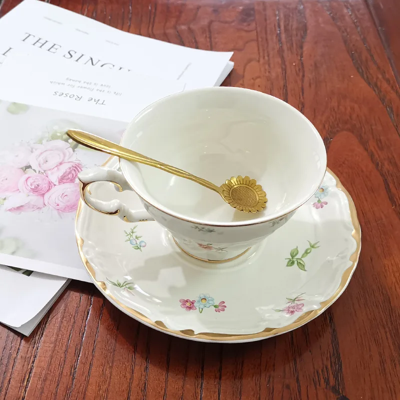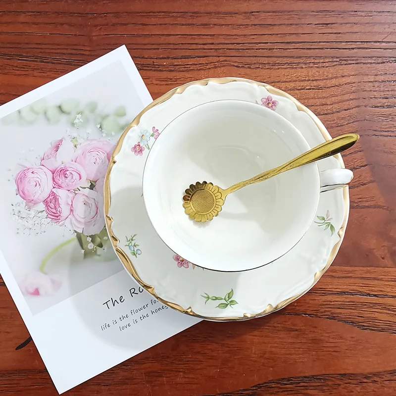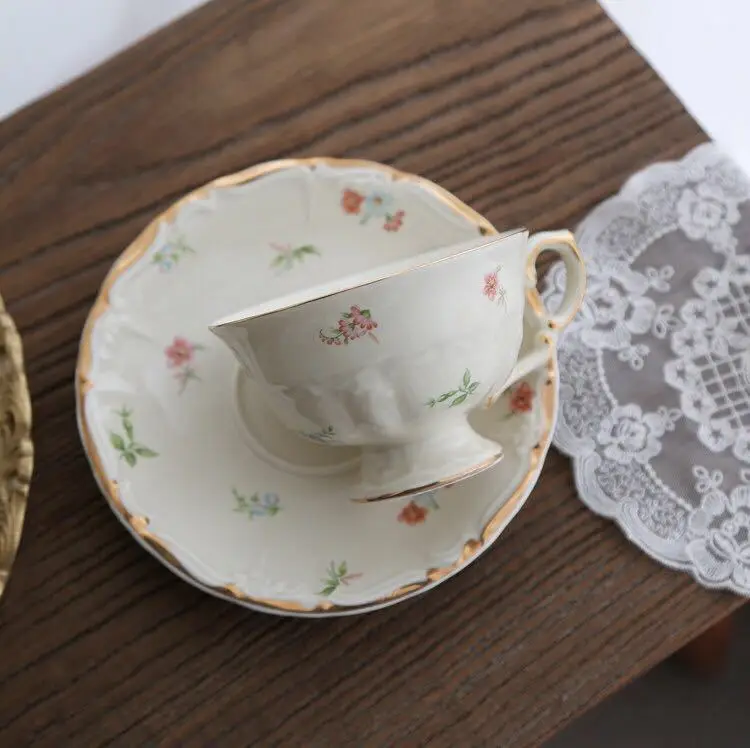 5. Эта кофейная чашка и блюдце имеет девчачьую атмосферу, а цветочный двусторонний