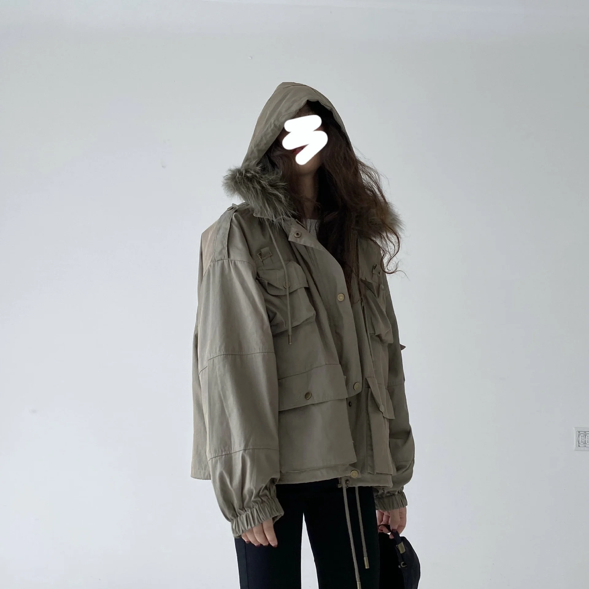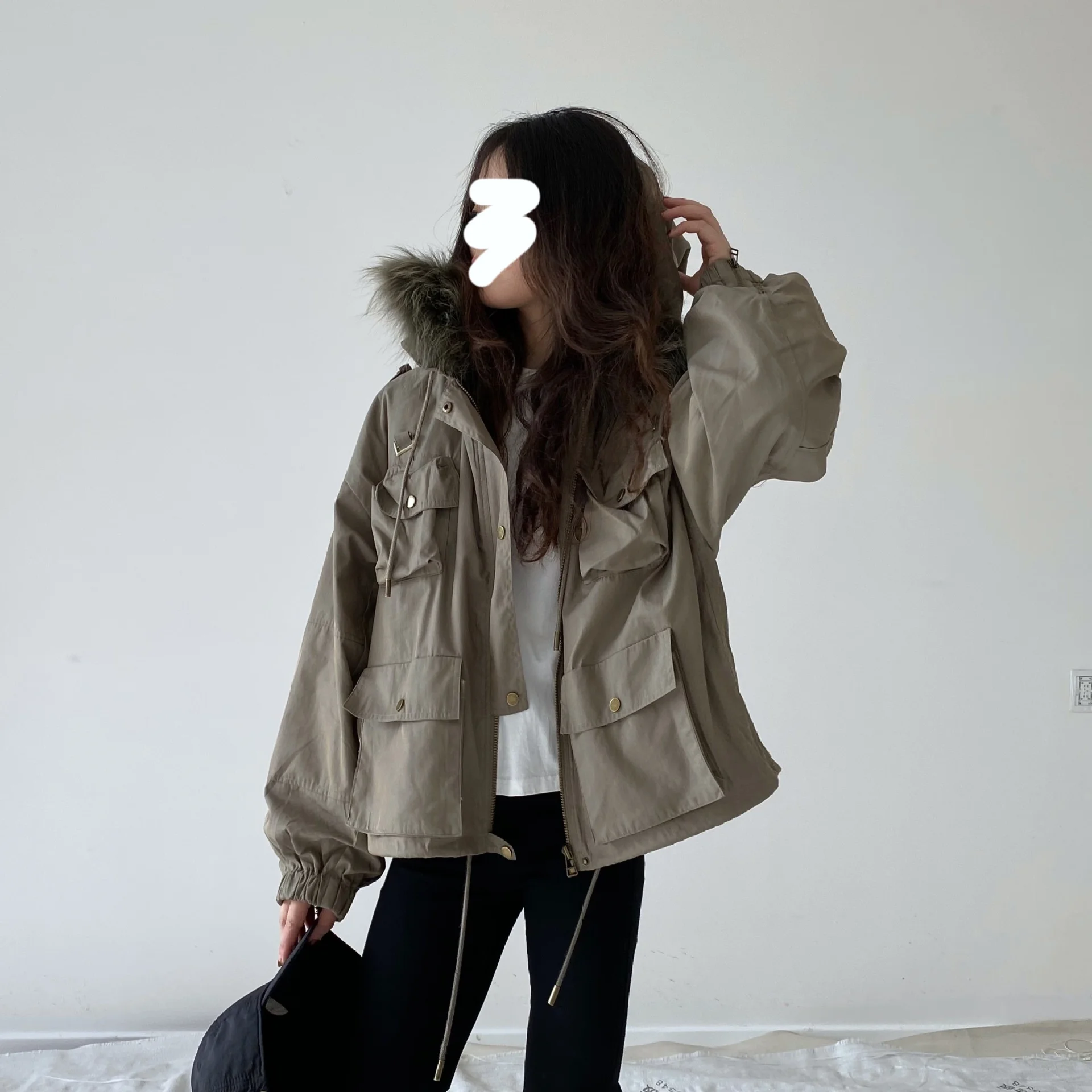 Зимняя женская куртка теплая плюшевая Повседневная Свободная с капюшоном из