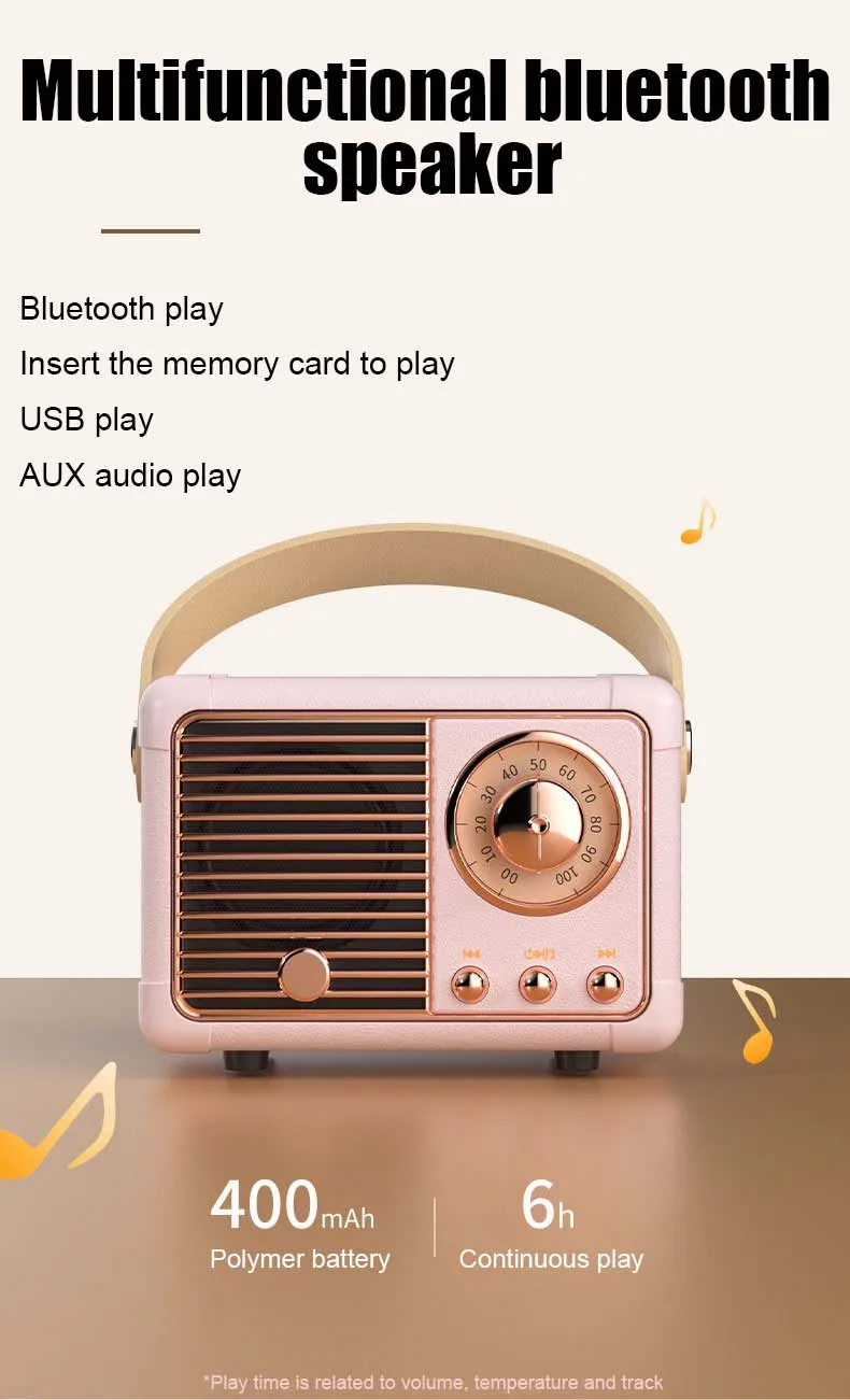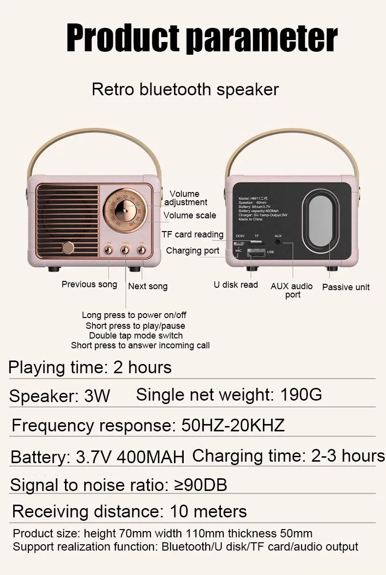 Мини Ретро FM радио беспроводной Bluetooth динамик Hi-Fi музыкальный плеер с AUX USB TF слот для карт Поддержка громкой связи Рождественский подарок
