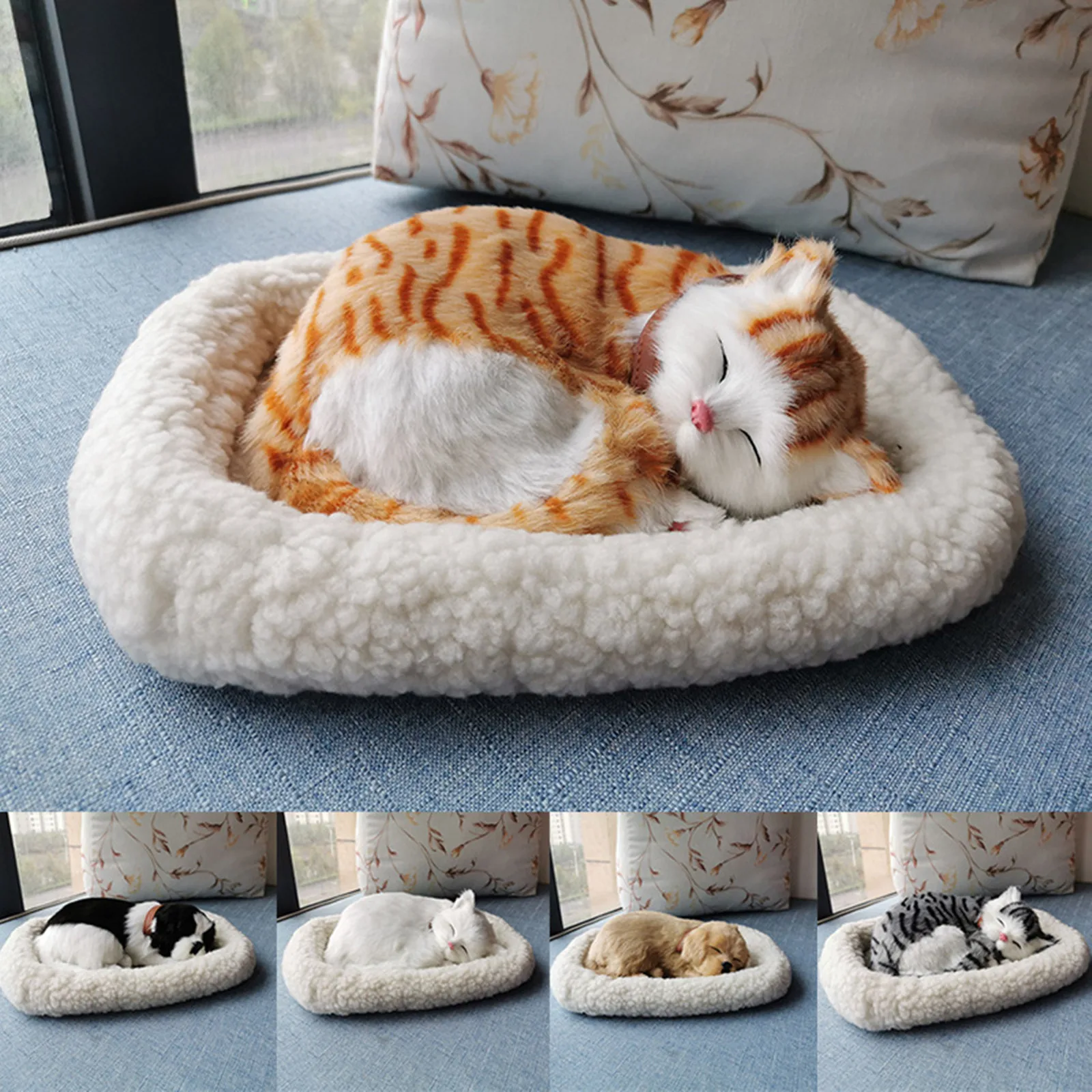 Спящая плюшевая дышащая кошка пушистая собака с ковриком креативный Декор животных