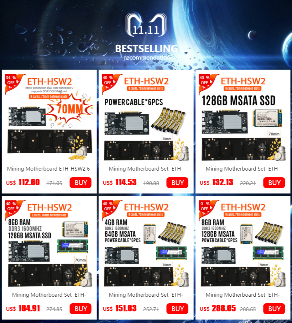 Комплект материнской платы ETH-HSW2 6 GPU(70 мм интервал) с 64 Гб mSATA SSD Bitcoin Crypto Etherum поддержка DDR3 PCIEX16 видеокарта для шахтера Rig