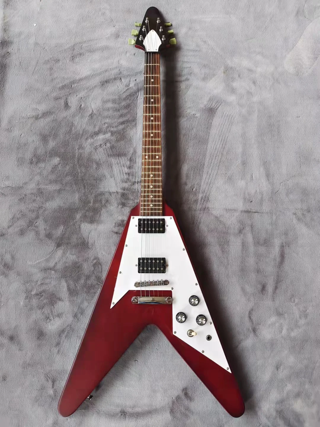 Электрическая гитара, черный и белый, оригинальная серия 70s Flying V, перламутровая Инкрустация, гитара в продаже, бесплатная доставка