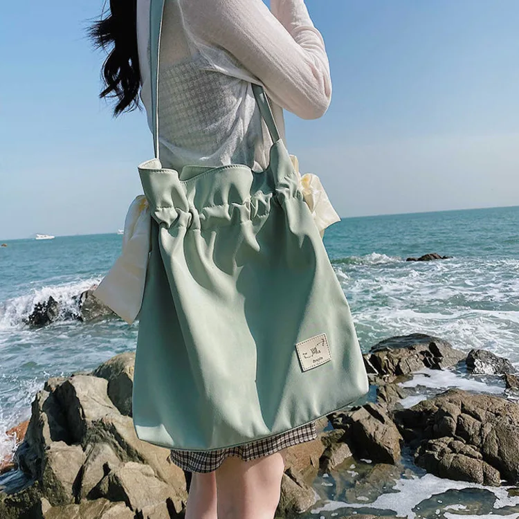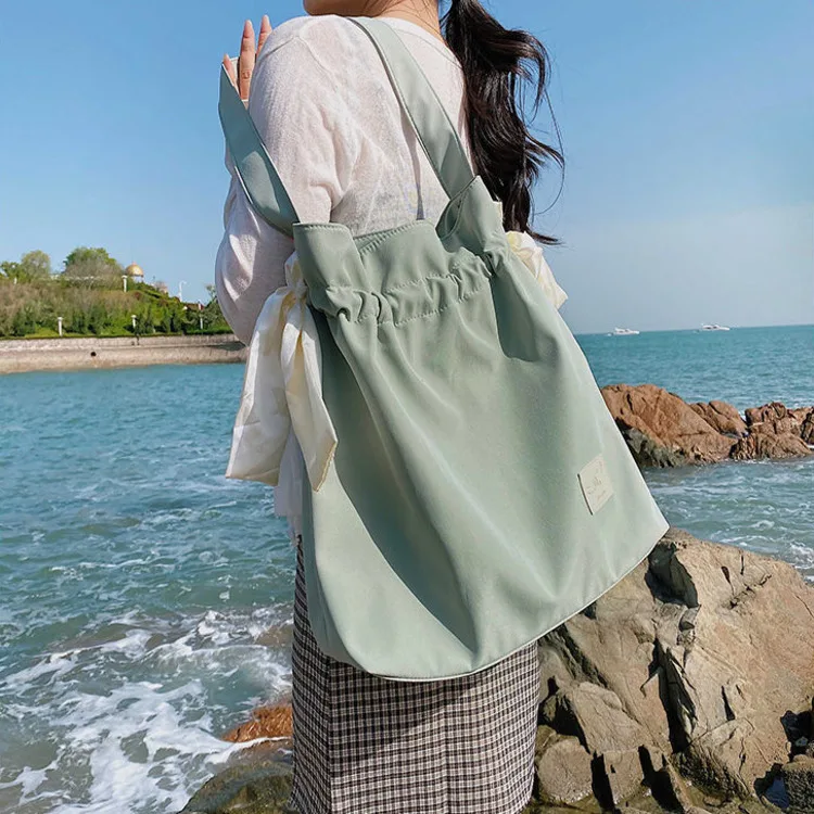 Сумка для хранения с бантом, пляжная сумка, однотонная Сумка-тоут, Студенческая сумка