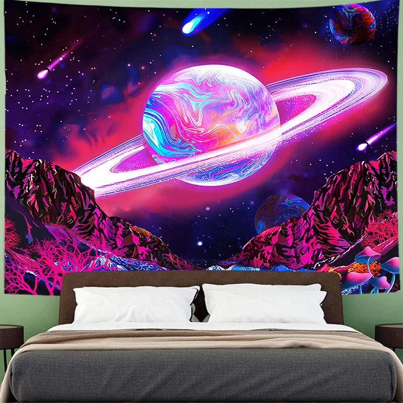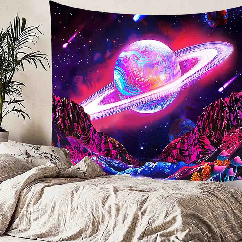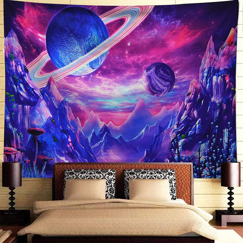 Отличная печать: 3D-печать гарантирует, что гобелен будет чистым. Этот гобелен-это Триппи-фон с планетой горного дерева и звездами, вы не пропустите ни одной детали на картинке.