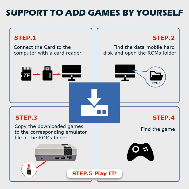 Возможность загружать и добавлять игры через интернет, вы можете скачать больше игр онлайн, или вы можете скачать бесплатные игры через наш веб-сайт FTP!