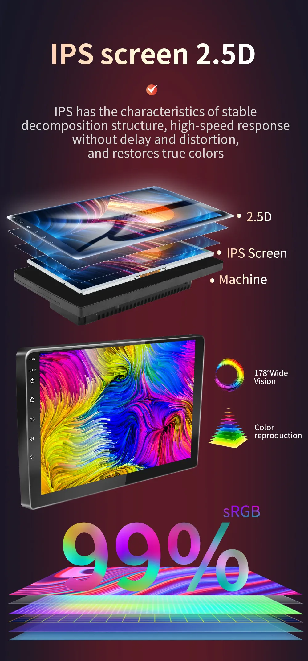 Разрешение экрана: 1024*600 (IPS/2.5D) опционально (QLED + IPS/2.5D-1280*720)