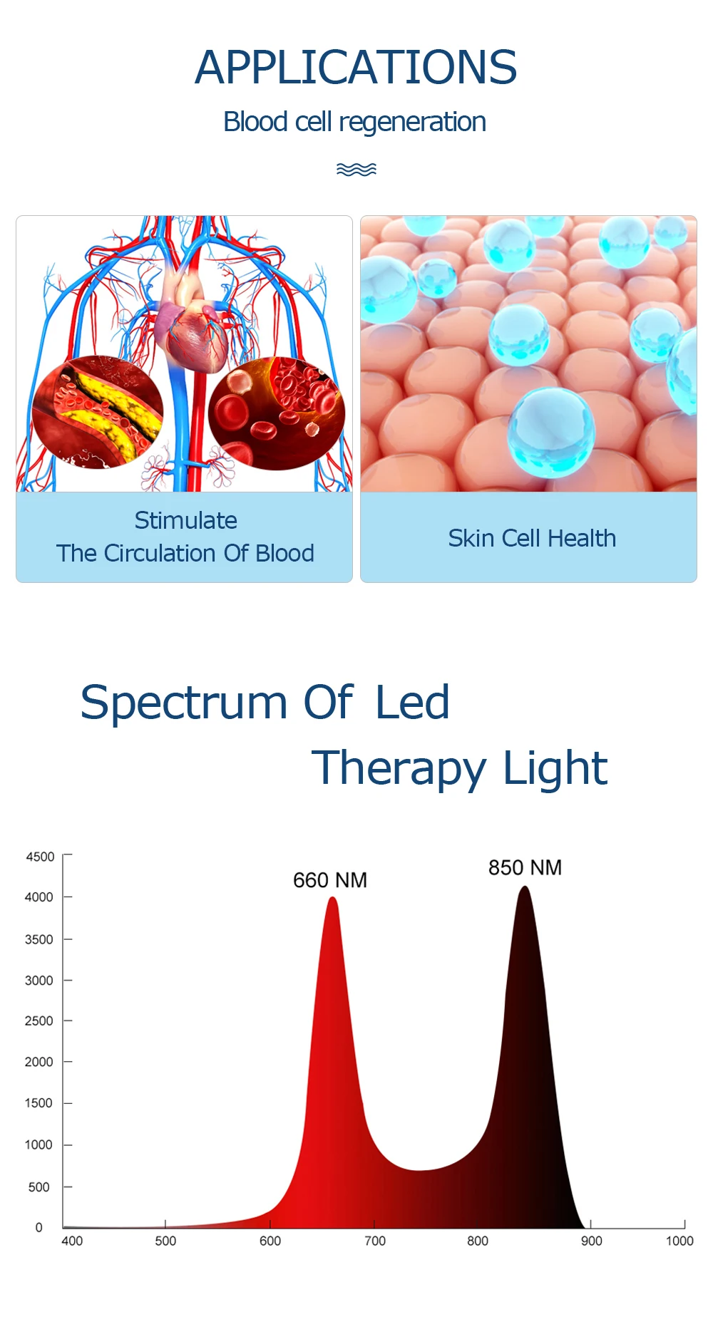 Красный свет, поставляемый на 660нм, легко впитывается поверхностными тканями и клетками, что повышает здоровье и заживление кожи.