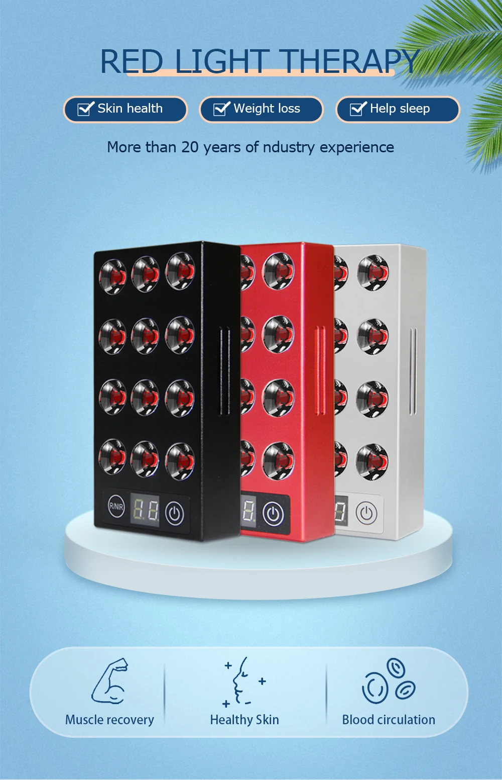 R + NIR обеспечивает непрерывный красный свет и импульсный NIR свет для повышения естественного восстановления, заживления и процесса регенерации тела. Идеально подходит для лечения после тренировки.